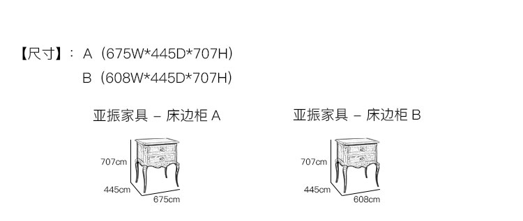 亚振火狐官方网站 - 床边柜 产品尺寸/示意图