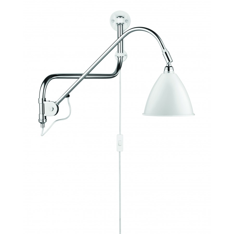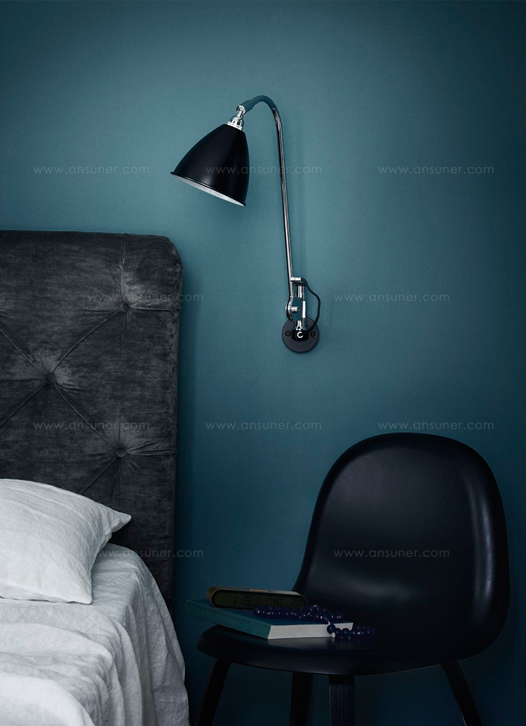 Bestlite BL6壁灯有一个高度可调臂,以改变高度的光与阴影,可以倾斜90°从水平到垂直。遮阳帘也可旋转360°。这个灯可以使用所提供的插头硬接线。