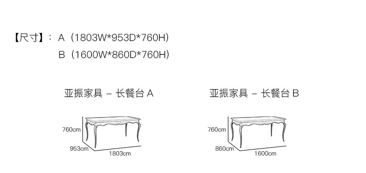 亚振火狐官方网站 - 长餐台 产品尺寸/示意图