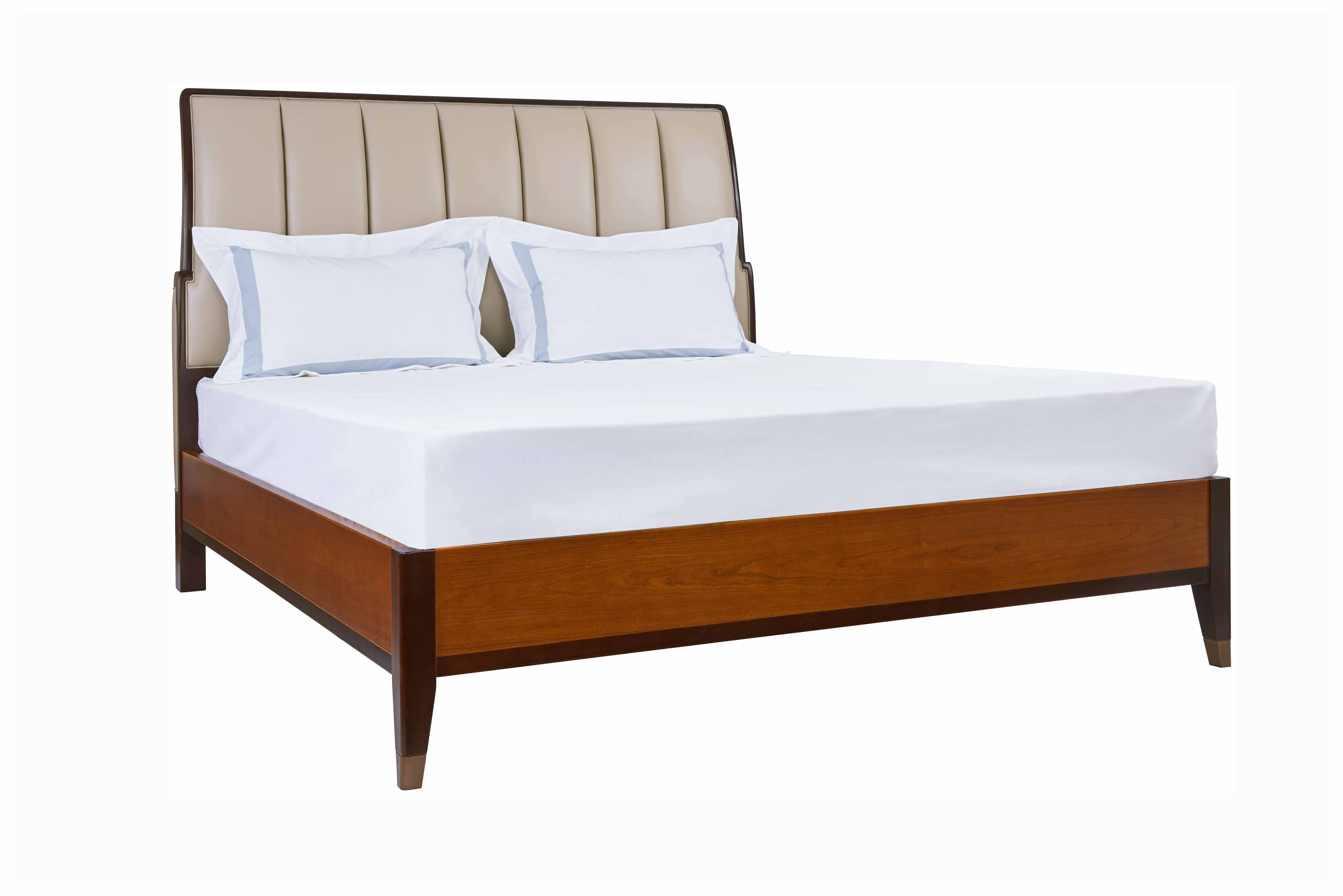 线型具有浓郁的Art deco风格,现代简洁又充满艺术调性;由进口皮质软包的床头,舒适感极佳。