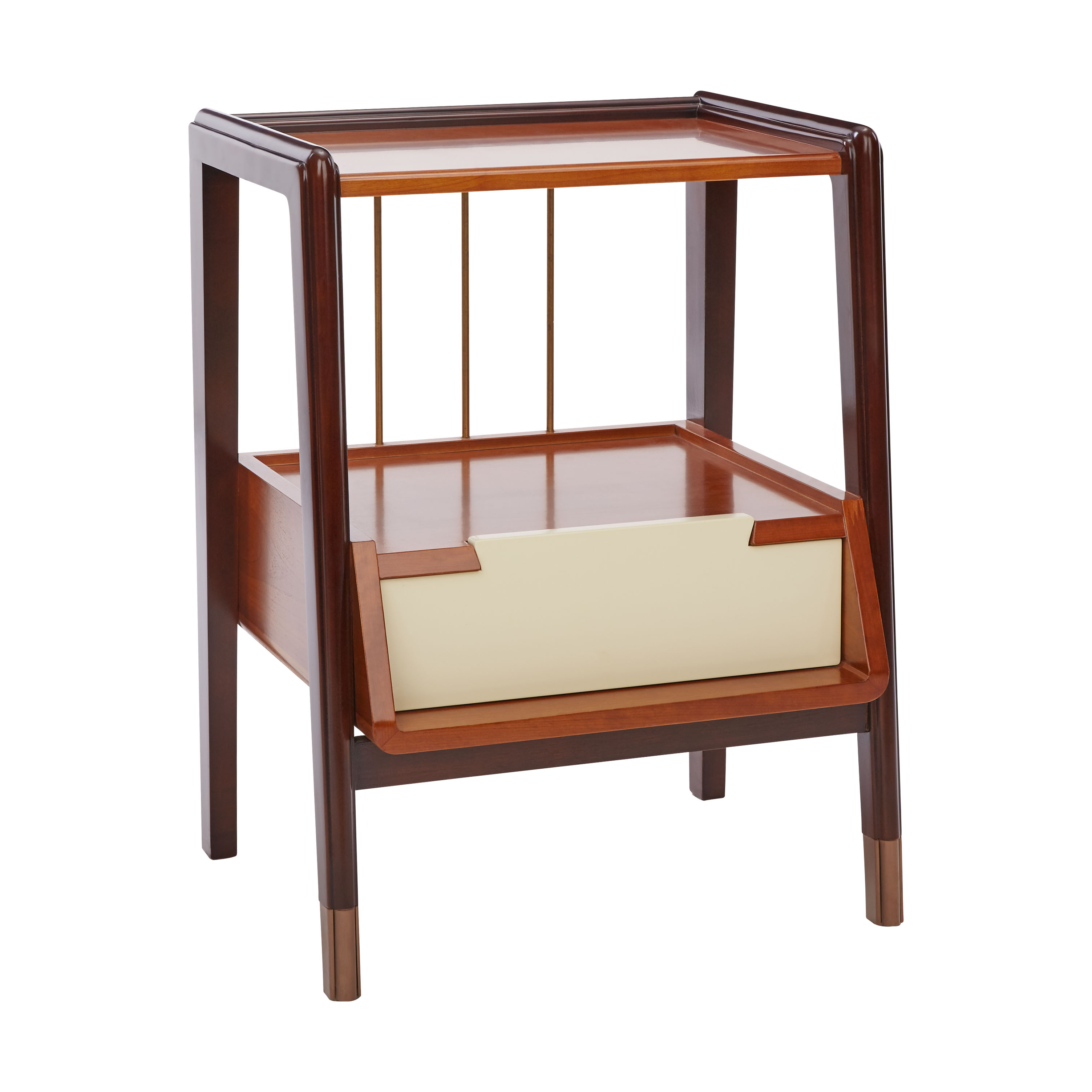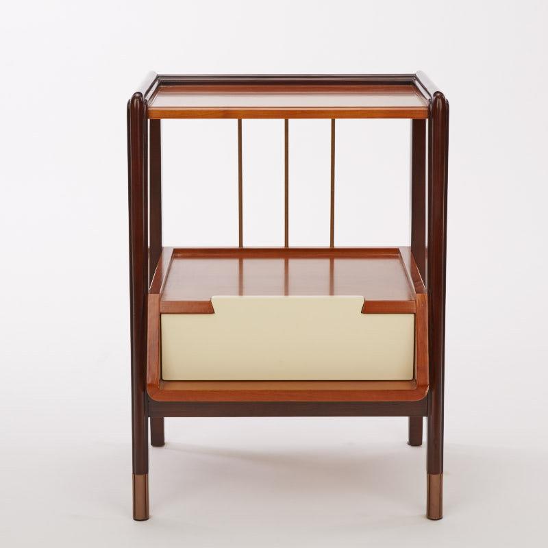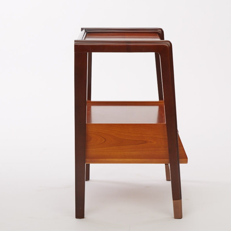 抽屉面采用燕尾榫,美观而又实用;铜脚,赋予中式韵味的同时以防磨损。按不同需求,设计了三个层面的收纳功能,简单实用。