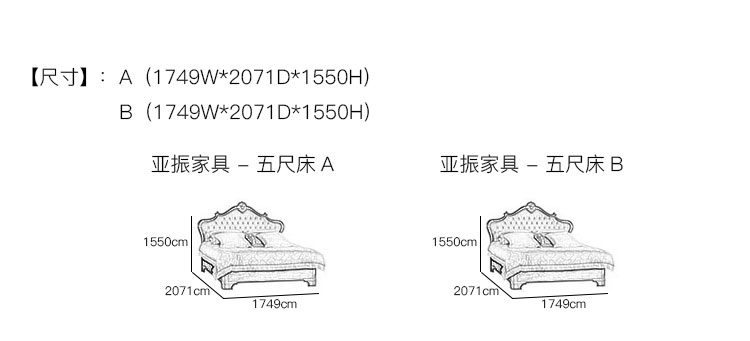 亚振火狐官方网站 - 五尺床 产品尺寸/示意图