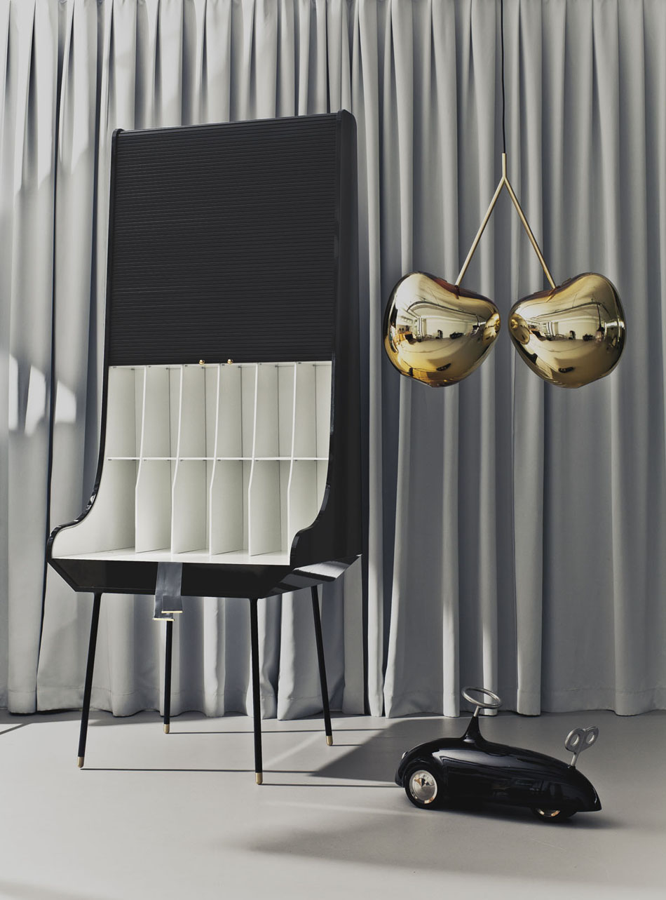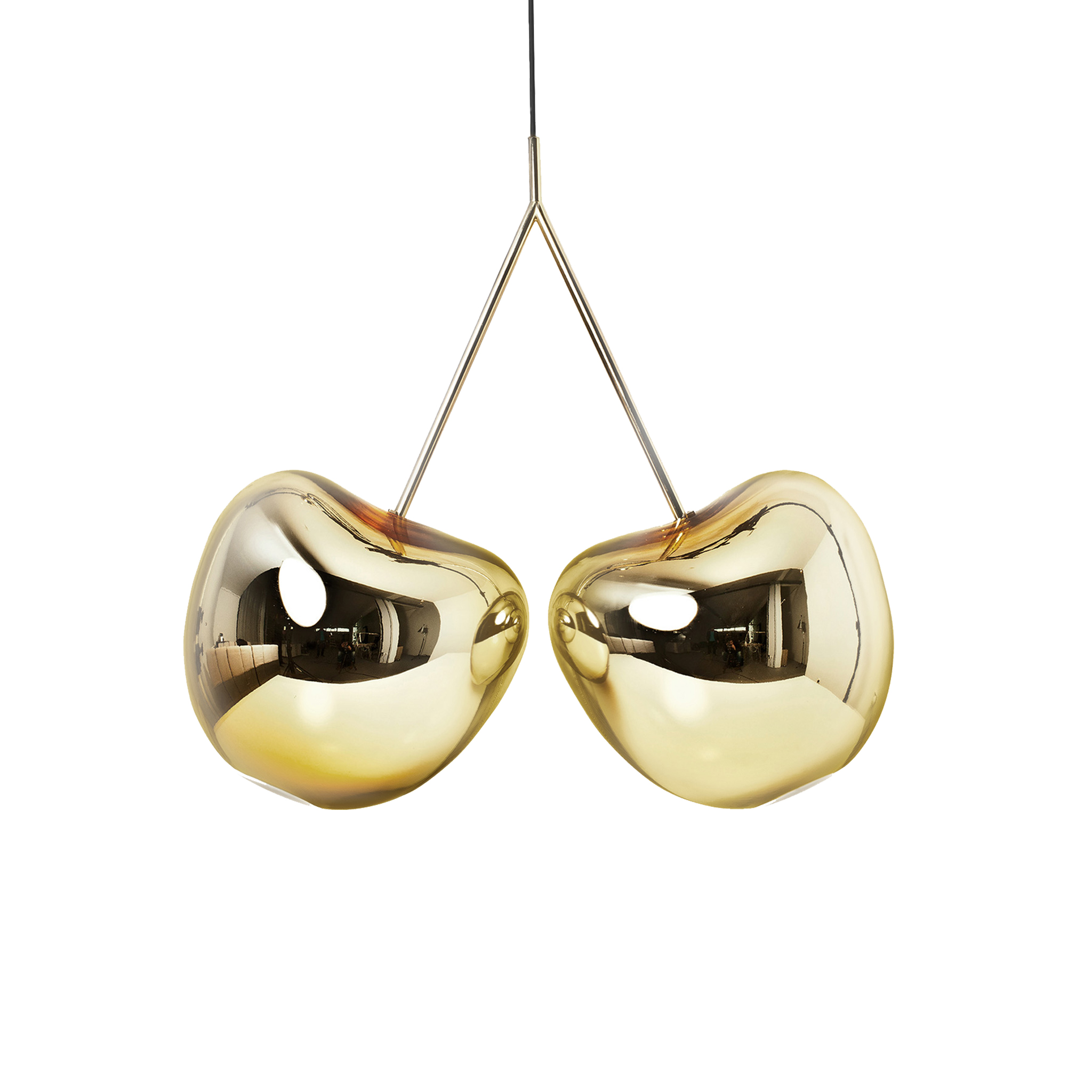 吊灯悬挂在天花板上,闪烁着欲望的光芒:它迷人而丰满的形状,能够反映出华丽的外表和金色的外表,暗示着一种从树上摘水果的本能。