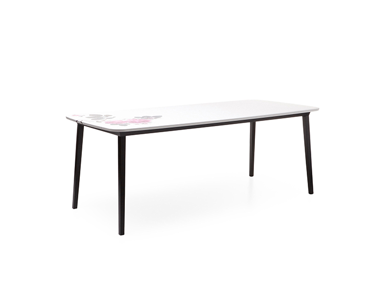 “灵感源自粉红玫瑰的经典英国瓷器,这张桌子反映了对高贵历史中几乎被遗忘的价值观和感受的热爱。榉木和skai皮革创造了一种柔软的表面,将传统与创新相结合的强大产品。”