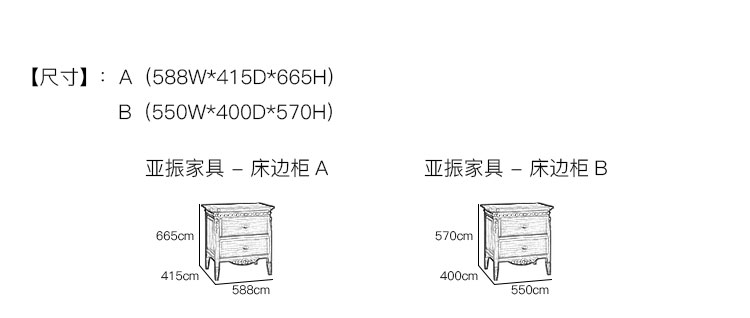 亚振火狐官方网站 - 床边柜 产品尺寸/示意图