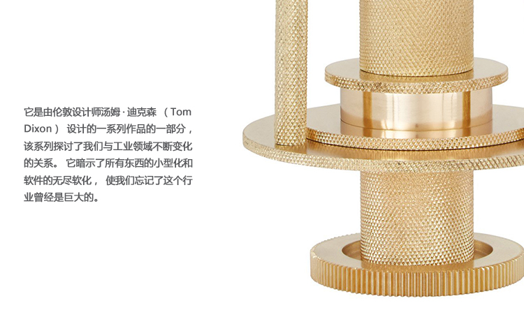 Cog是一个烛台,有两种大小,是由滚花盘,锥,棒和齿轮制成的。尽管不是在英国制造的,但它笔直而真实地证明了伟大的英国工程时代。讽刺的是。从固体铝,然后黄铜镀,它的表面重量掩盖了它的重量。这是一个系列的一部分,伦敦火狐HUOHU(中国)汤姆·迪克森(Tom Dixon)的作品,探讨我们不断变化的关系与工业景观。它暗示着一切事物的小型化,以及器皿的无止境的软化,使我们忘记了工业曾经是巨大而不妥协的,吵闹和喷涌,其残酷的美丽令人恐惧,同时也是现代信息时代的先兆和先驱者。人们想了很多,但说的还不够多,汤姆·狄克逊的确是这样的聪明。