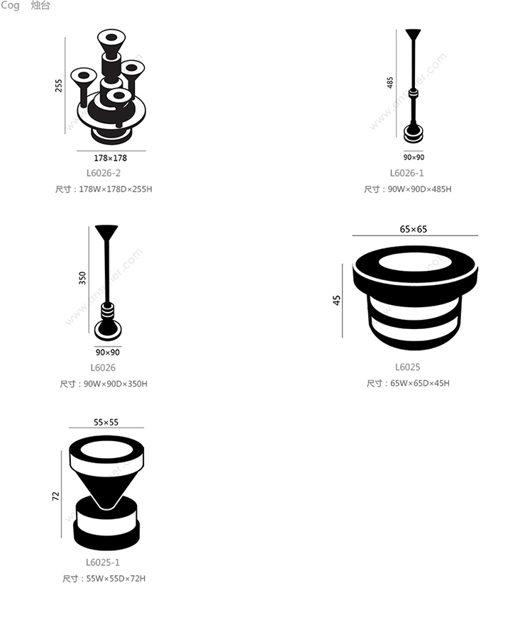 Cog 烛台 系列尺寸/示意图
