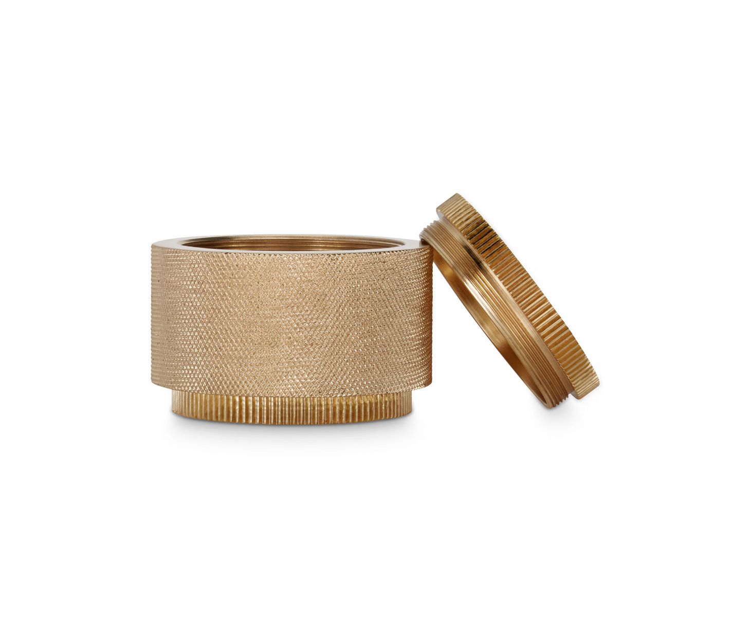 一种带有螺丝盖的超功能的机械金属容器。英国工程时代的冠军,形成于镀铜的实心铝。