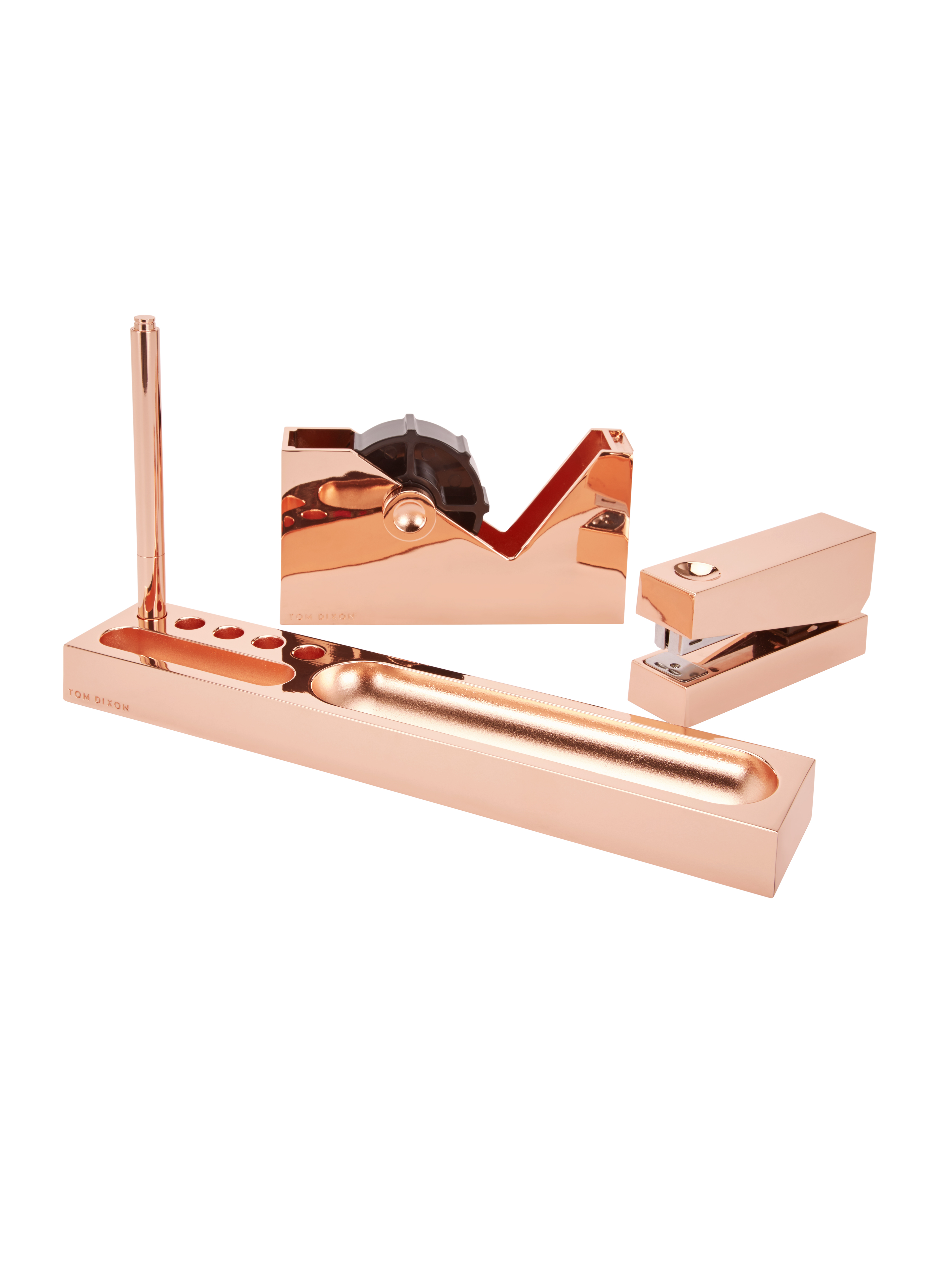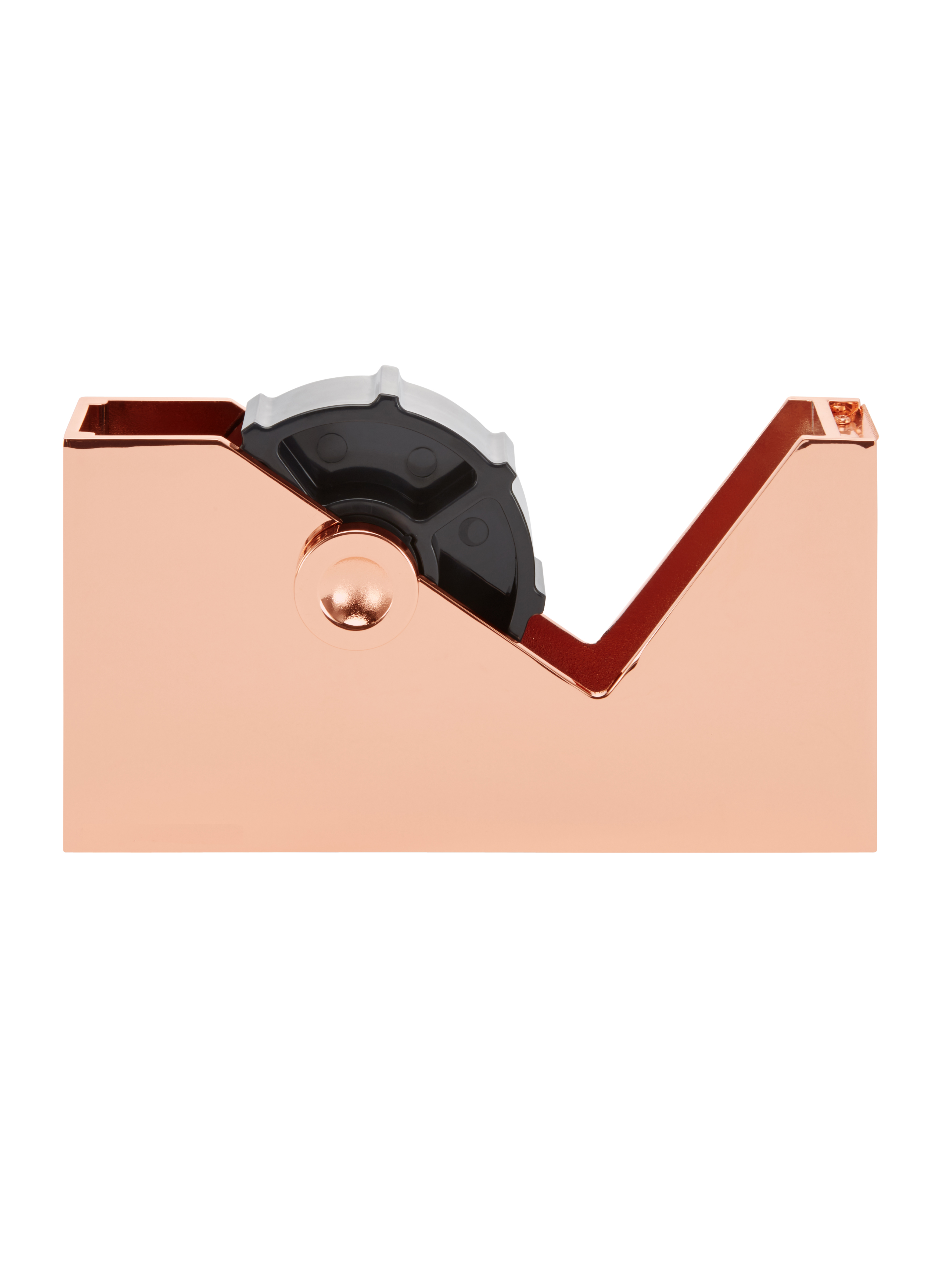 立方体胶带座是由锌合金制成,镀铜和漆完成。侧面的细微凹痕会使你牢牢握住。与我们的立方体订书机,书桌整洁和钢笔,可作为一套,并以礼盒包装。
