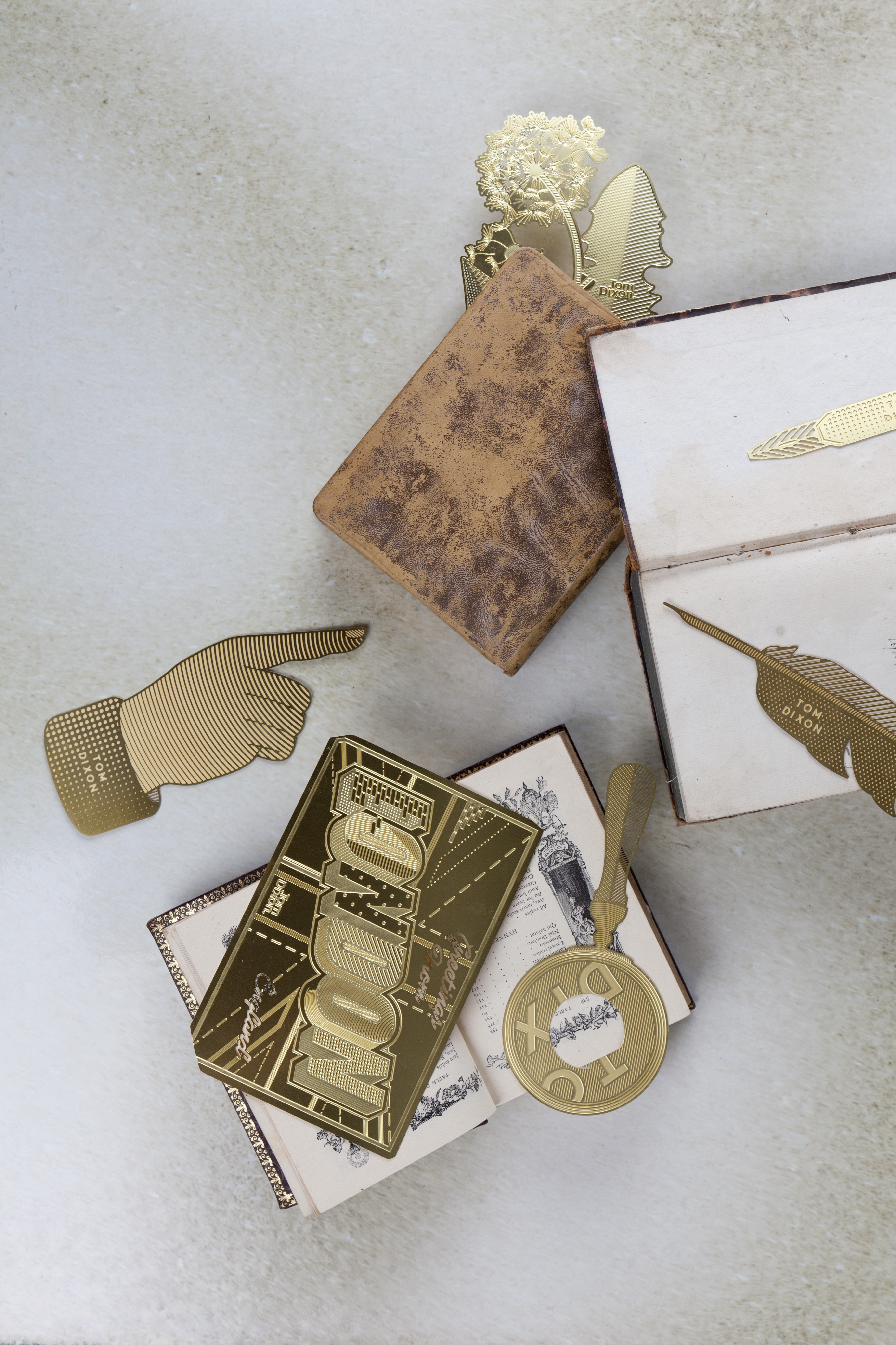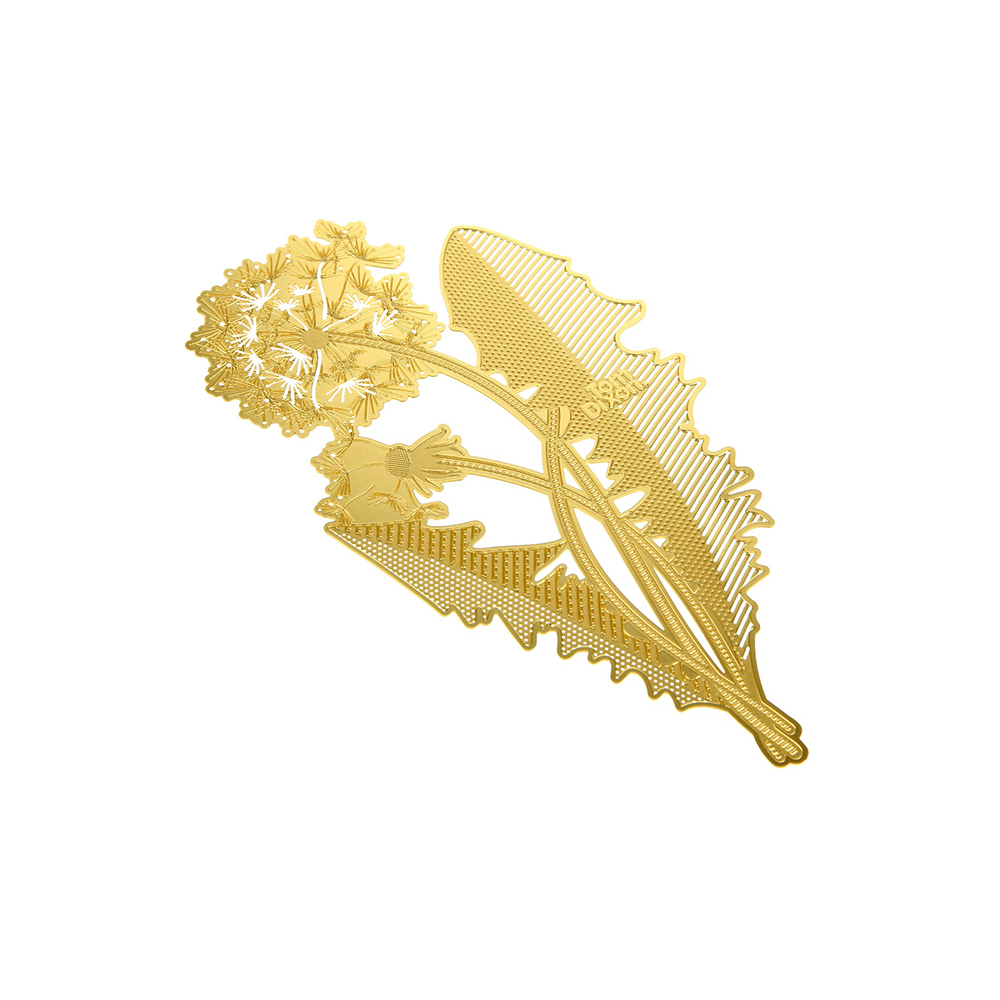 一个灵感来自大自然的书签和长期被遗忘的压花,往往落在一本备受喜爱的书的页面上。 工具蒲公英采用微观细节制造,从黄铜板精密蚀刻,创造出这种精致的花朵。 还有羽毛笔,钢笔,手形指针,明信片和放大镜。