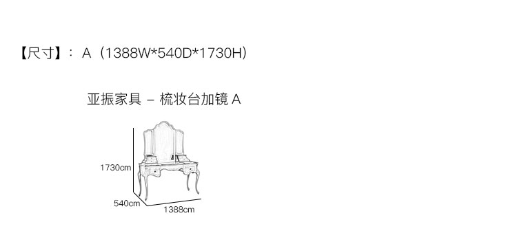 亚振火狐官方网站 - 梳妆台加镜 产品尺寸/示意图
