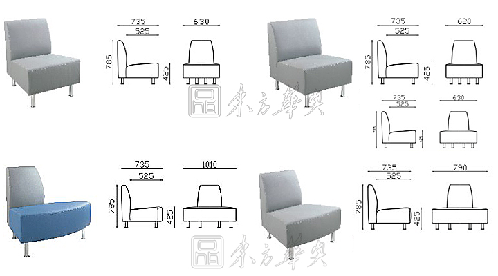 ※  上图为跑道型的大堂沙发的组合分体结构图,由上面的4款沙发进行组合而成,也可以分开单体使用,比较灵活轻巧!