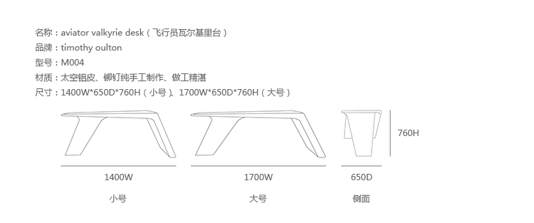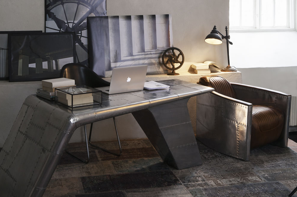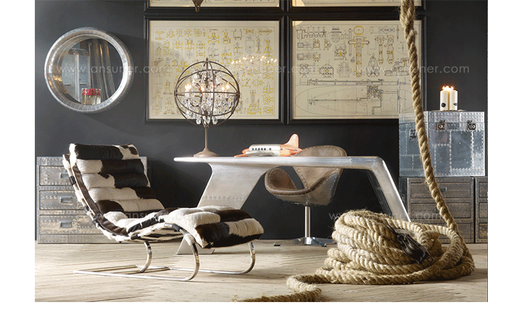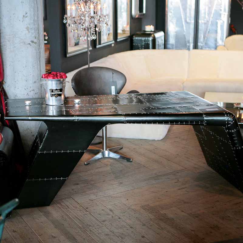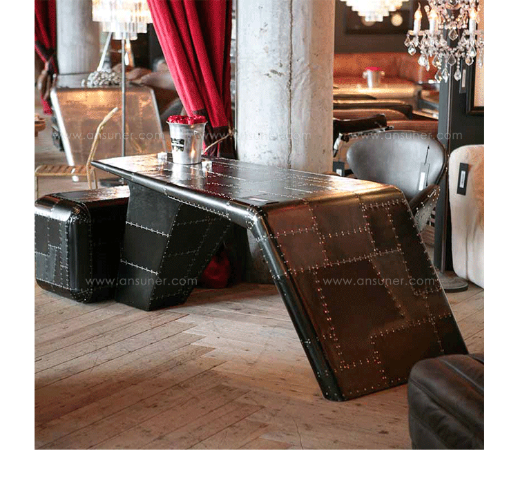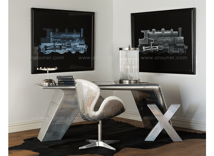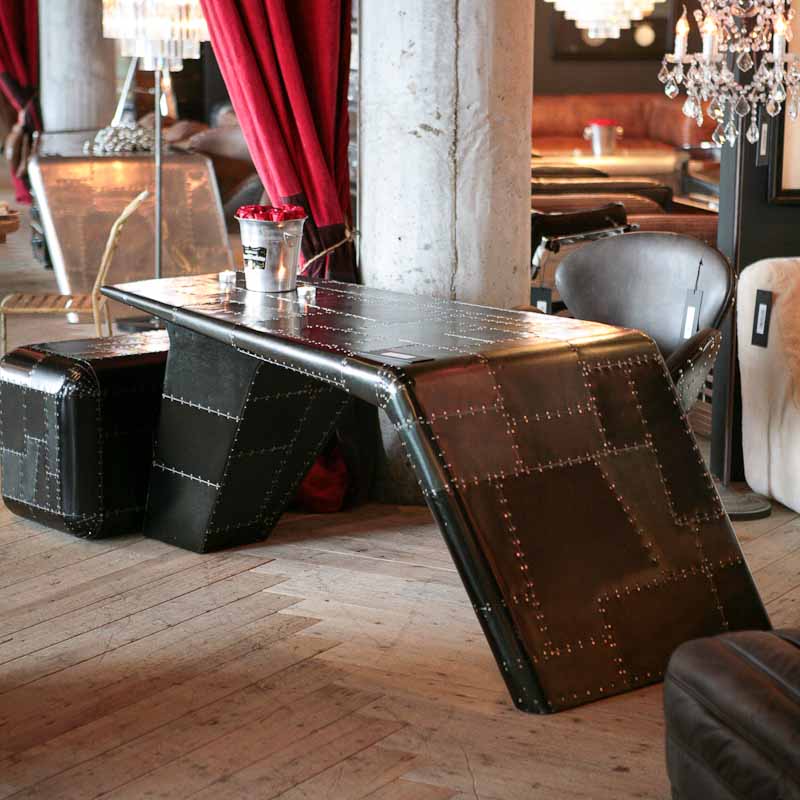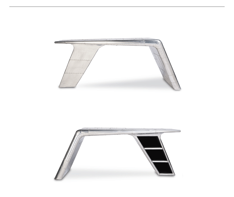 Aviator Valkyrie Desk(飞行员瓦尔基里台)由英国著名火狐HUOHU(中国)Timothy Oulton设计,灵感来源于1960年北美航空的超音速轰砸飞机XB70,并以此命名。瓦尔基里台用铆接铝板制造,弧形线条符合空气动力学,有如一双机翼,通过手工艺进行打磨,进行磨光,座子整体造型有如喷火战机或黑色喷火式战斗机。