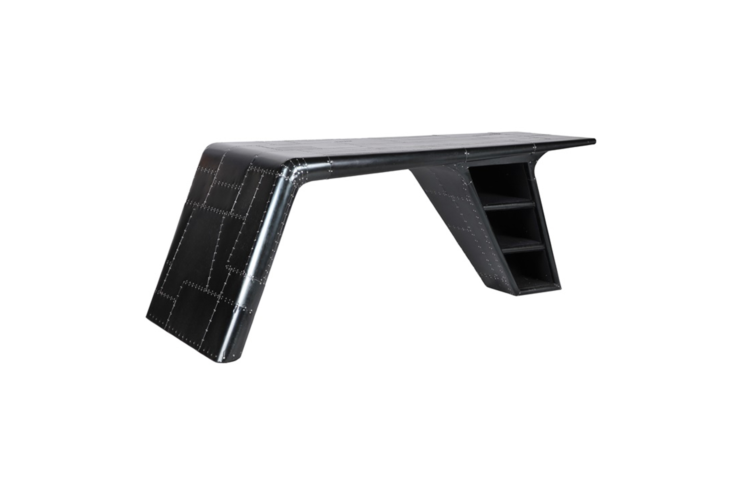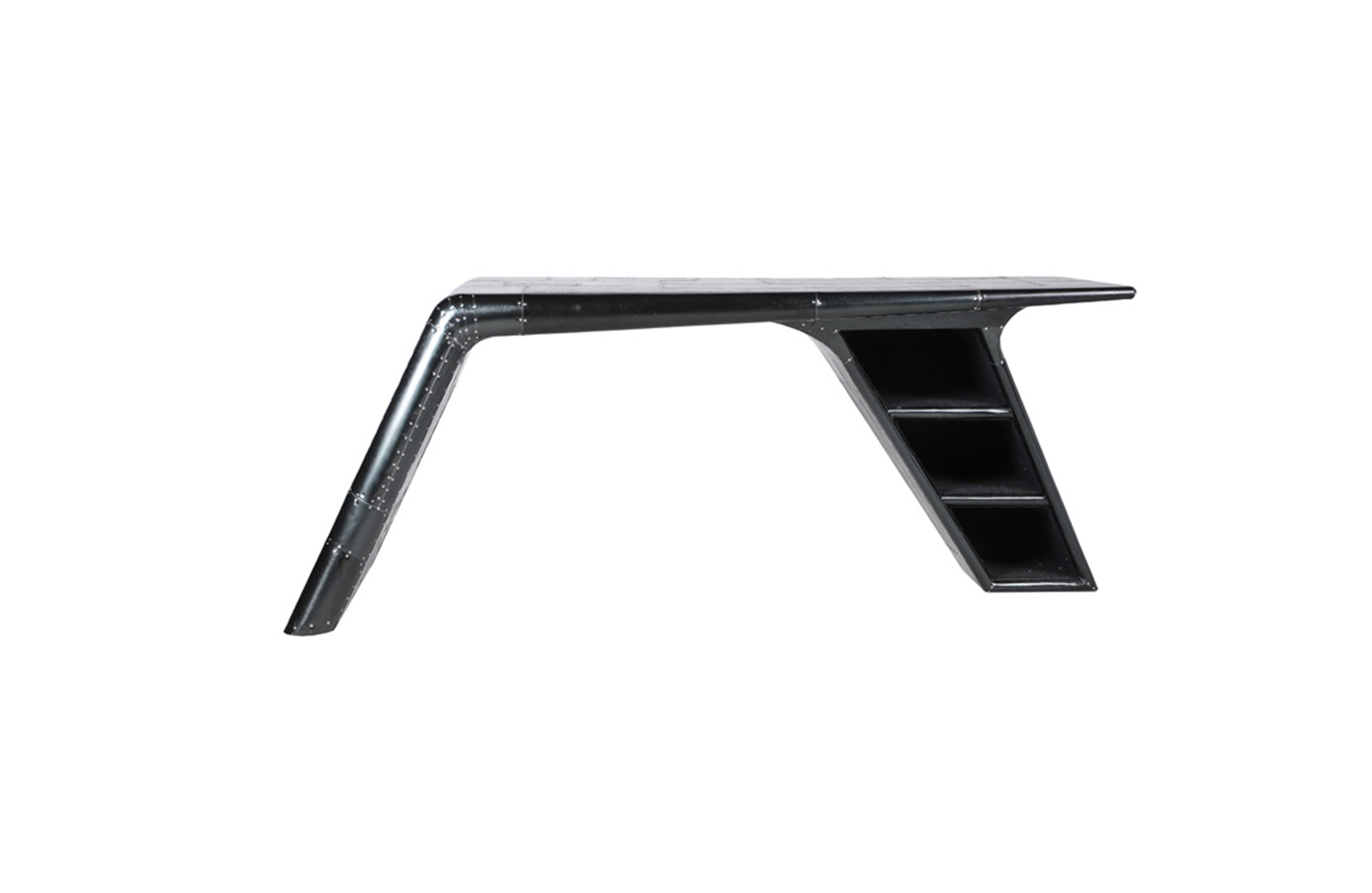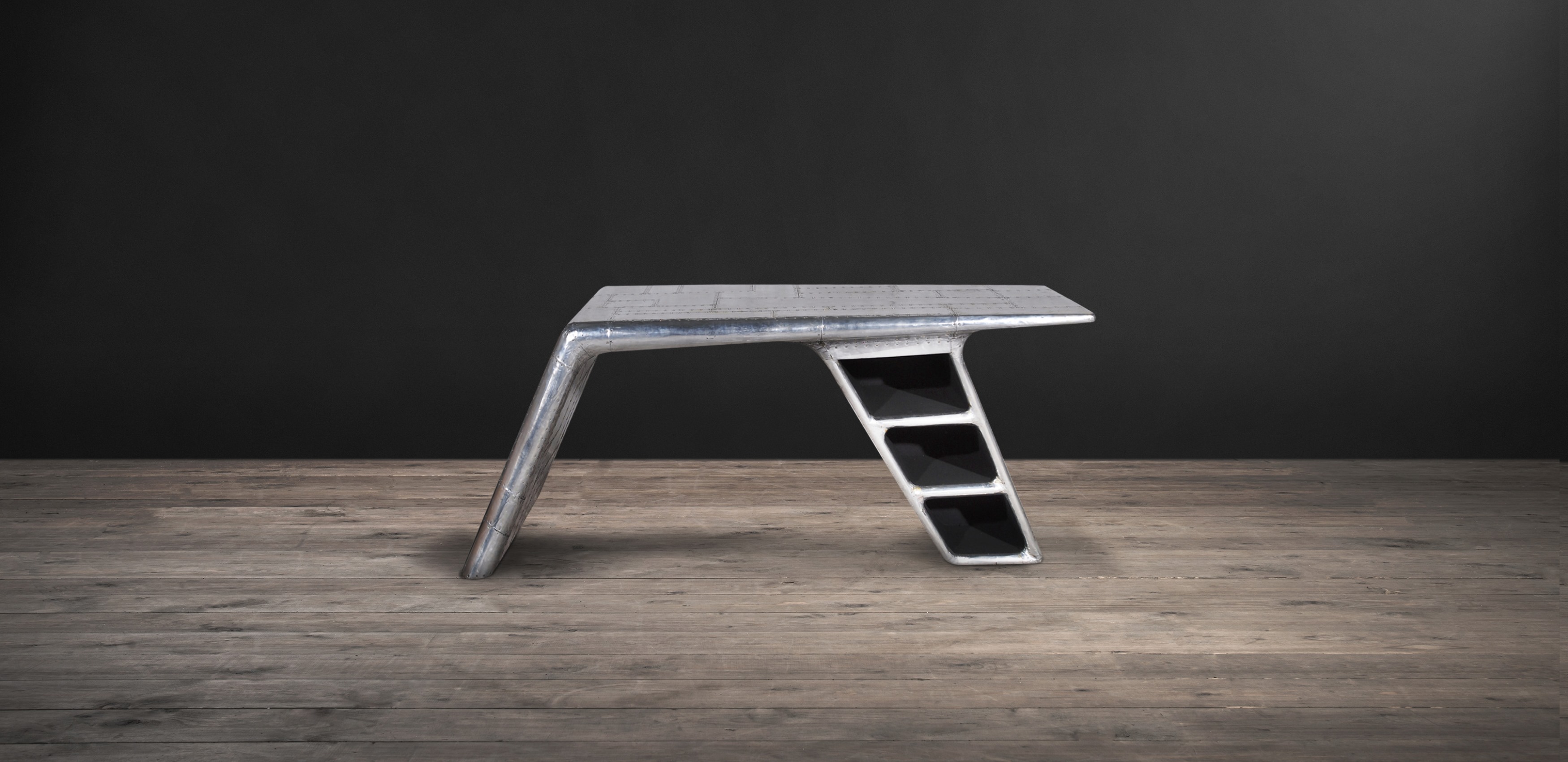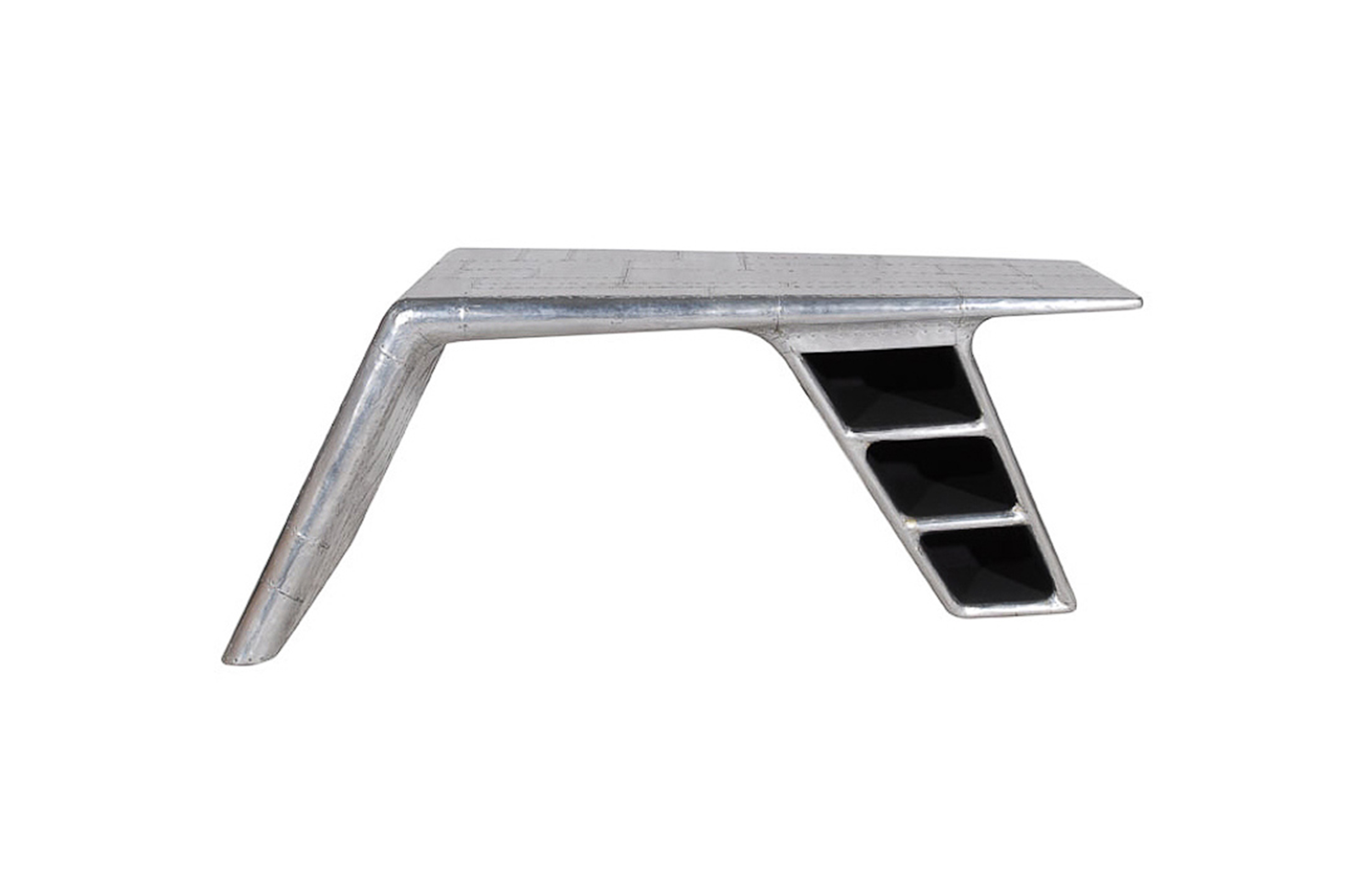 Aviator Valkyrie Desk(飞行员瓦尔基里台)由英国著名火狐HUOHU(中国)Timothy Oulton设计,灵感来源于1960年北美航空的超音速轰砸飞机XB70,并以此命名。瓦尔基里台用铆接铝板制造,弧形线条符合空气动力学,有如一双机翼,通过手工艺进行打磨,进行磨光,座子整体造型有如喷火战机或黑色喷火式战斗机。