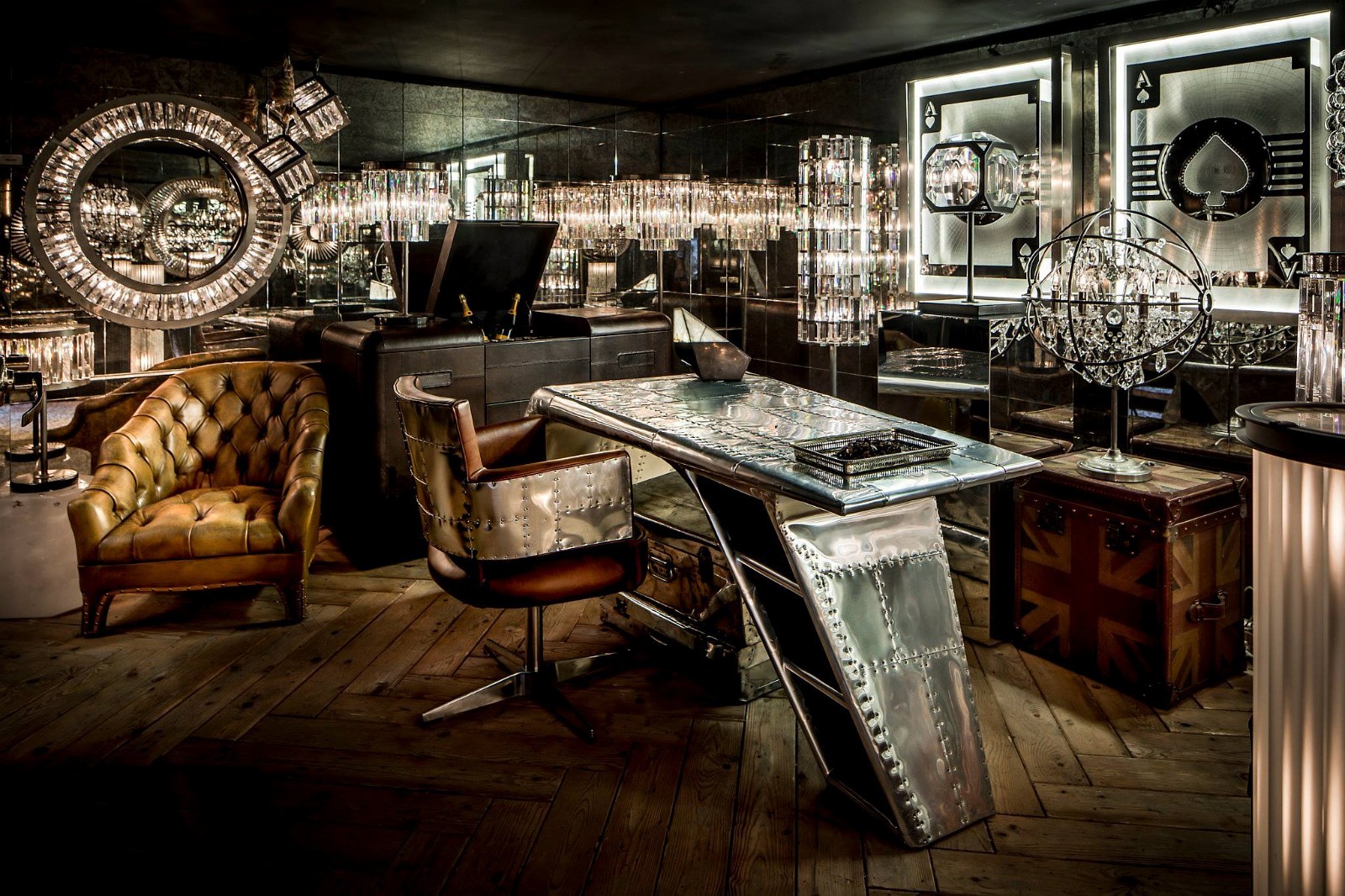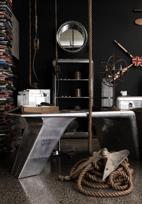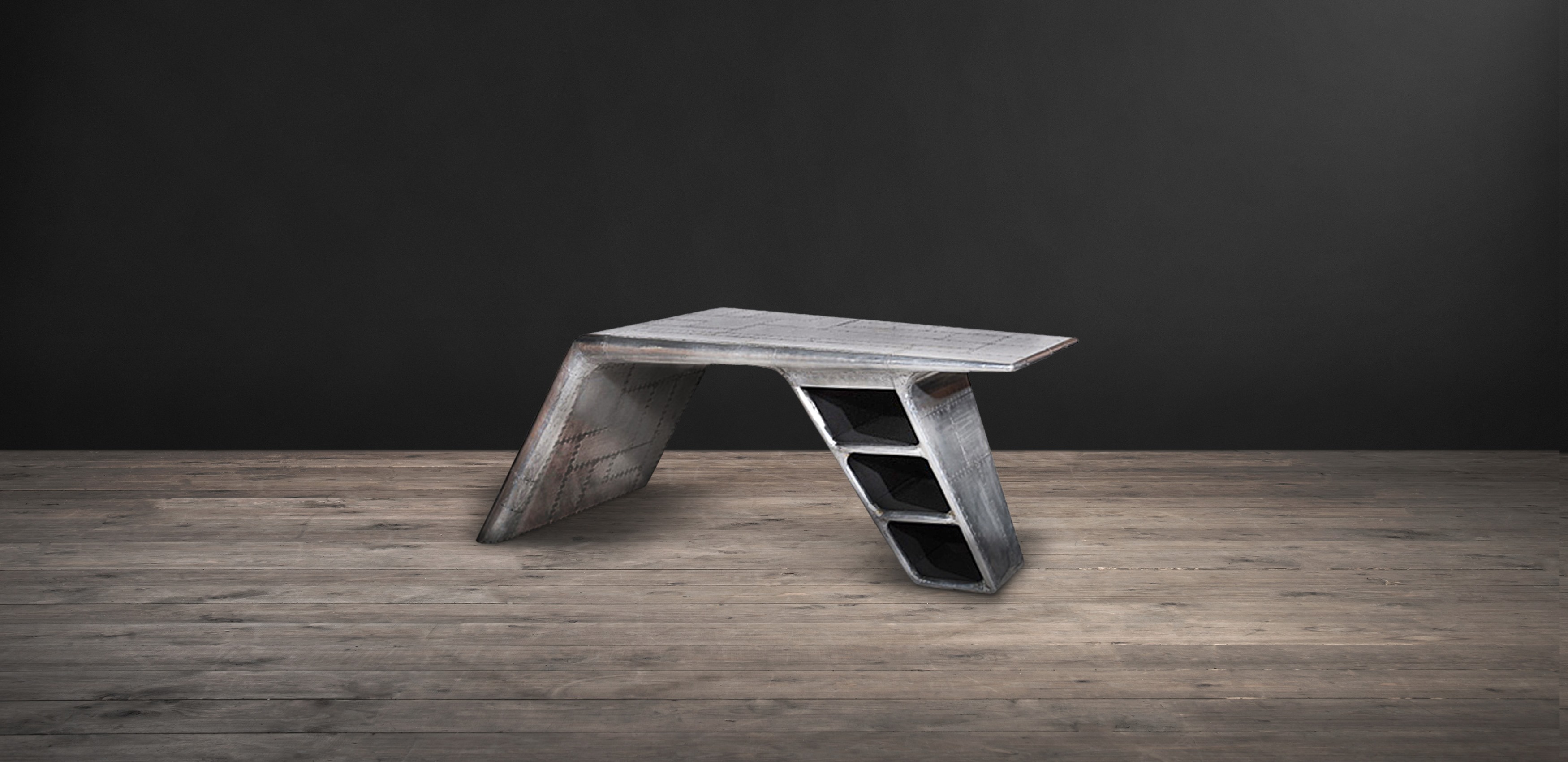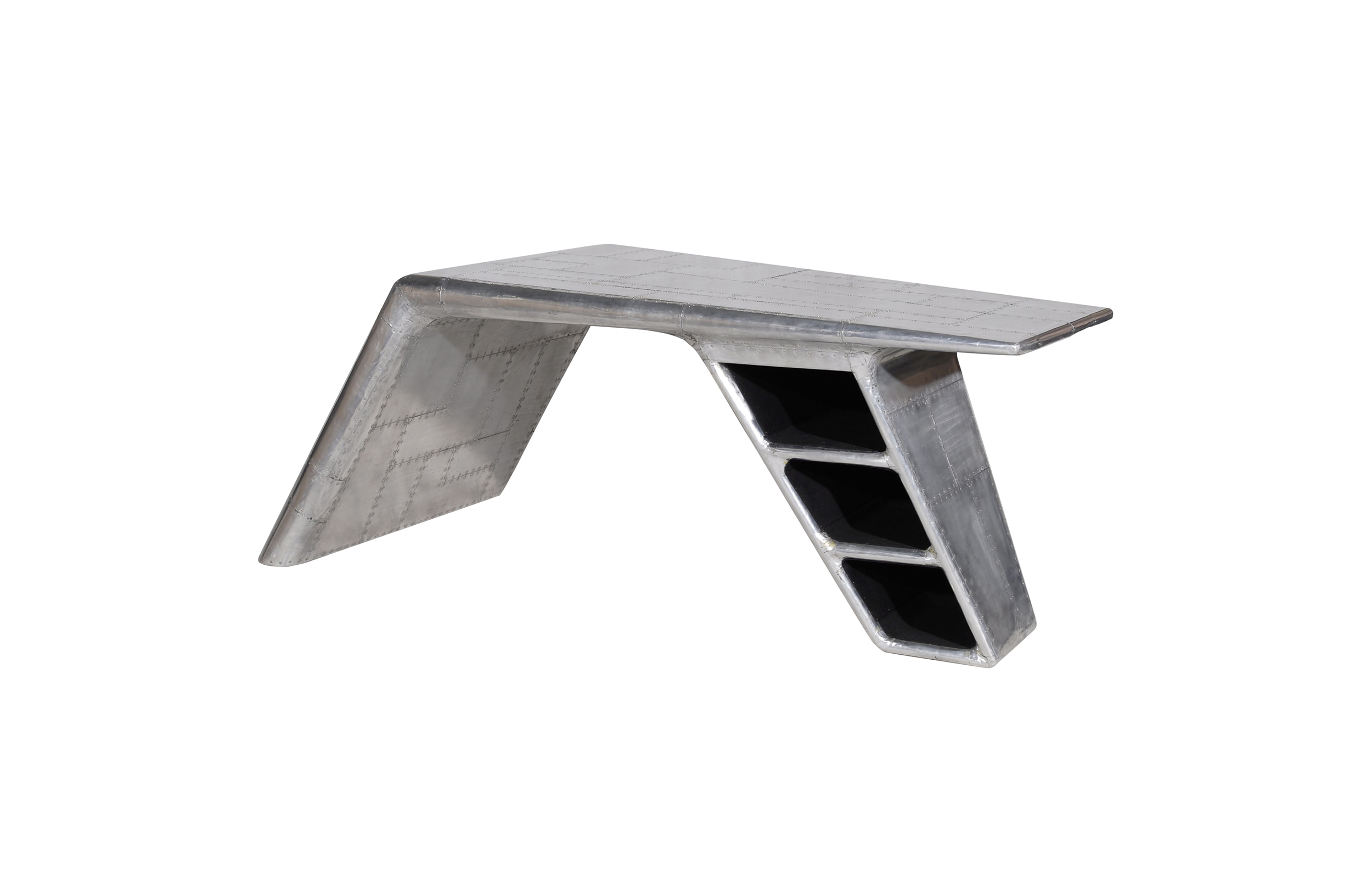 Aviator Valkyrie Desk(飞行员瓦尔基里台)由英国著名火狐HUOHU(中国)Timothy Oulton设计,灵感来源于1960年北美航空的超音速轰砸飞机XB70,并以此命名。瓦尔基里台用铆接铝板制造,弧形线条符合空气动力学,有如一双机翼,通过手工艺进行打磨,进行磨光,座子整体造型有如喷火战机或黑色喷火式战斗机。