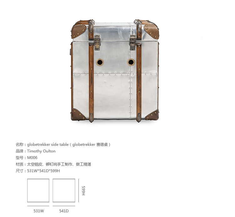 "慵懒、我行我素、精致、时尚,还有那么点怀旧的味道,Timothy Oulton家居的产品就是用这些无可替代的特点,征服了各国的英伦火狐官方网站爱好者们。重提浪漫时代的长长的豪华海上航行,Globetrekker 系列的灵感来自Timothy Oulton于1914年在一个古董市场发现旅行箱,他深深的被复杂细节和美丽的黄铜板的旅行箱迷住了,Oulton拆解了那个古色古香的旅行箱并进行重新设计出一系列作品,它涵盖的灯表、 箱子、 咖啡桌和书柜等集合。捕获真正的魅力,还原精致工艺的旧古董皮箱的精髓,通过怀旧的贴纸饰面样式,采用老木、优质的老式皮革和黄铜铰链,通过精湛的手工处理完成了这套系列。