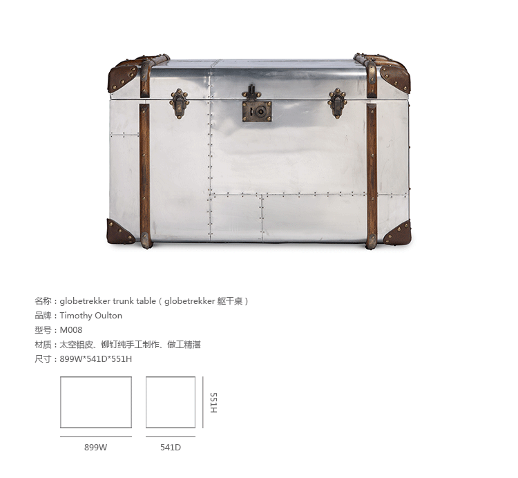 "慵懒、我行我素、精致、时尚,还有那么点怀旧的味道,Timothy Oulton家居的产品就是用这些无可替代的特点,征服了各国的英伦火狐官方网站爱好者们。重提浪漫时代的长长的豪华海上航行,Globetrekker 系列的灵感来自Timothy Oulton于1914年在一个古董市场发现旅行箱,他深深的被复杂细节和美丽的黄铜板的旅行箱迷住了,Oulton拆解了那个古色古香的旅行箱并进行重新设计出一系列作品,它涵盖的灯表、 箱子、 咖啡桌和书柜等集合。捕获真正的魅力,还原精致工艺的旧古董皮箱的精髓,通过怀旧的贴纸饰面样式,采用老木、优质的老式皮革和黄铜铰链,通过精湛的手工处理完成了这套系列。