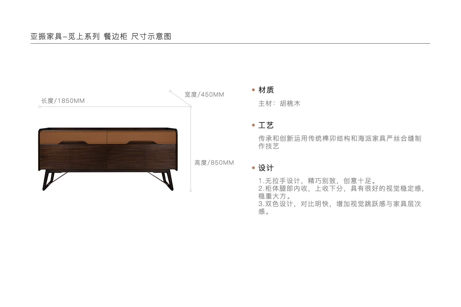 1.无拉手设计,精巧别致,创意十足。 2.柜体腿部内收,上收下分,具有很好的视觉稳定感,稳重大方。 3.双色设计,对比明快,增加视觉跳跃感与火狐官方网站层次感。