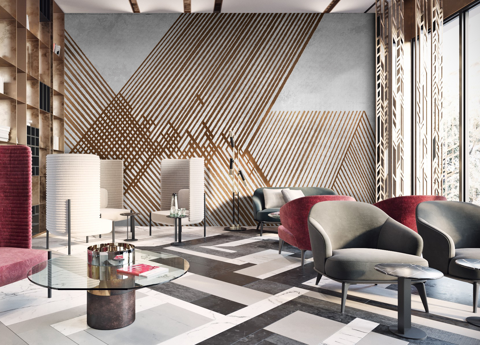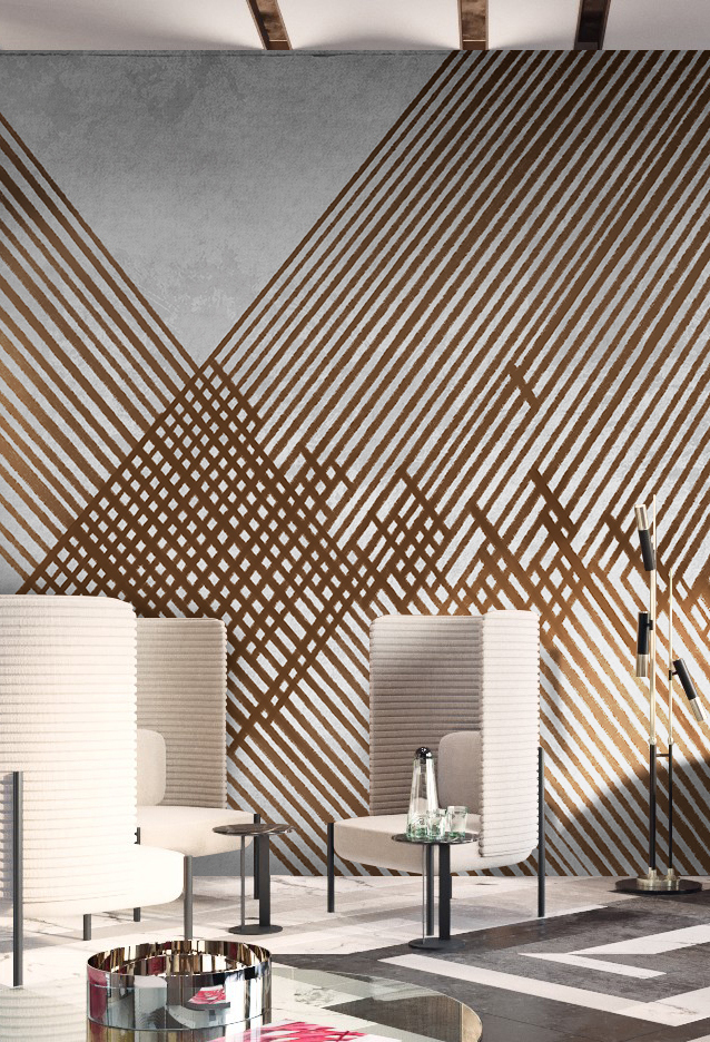 空间几何系列以点线面的构成作为创作主题,利用不同的构成方式,创造多样化的视觉效果,我们放弃了具体的内容和情节,突出运用这些纯粹的绘画语言来表现艺术形式的纯粹美;点、线、面和构成手法,就像是大厦的基石一样,看起来毫不起眼,但力量却无比强大,它是我们不断探索的源泉和情感表达的桥梁