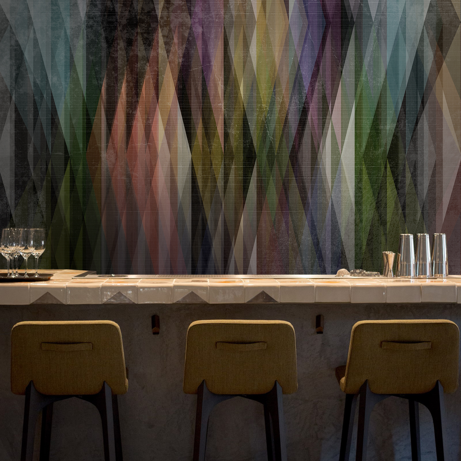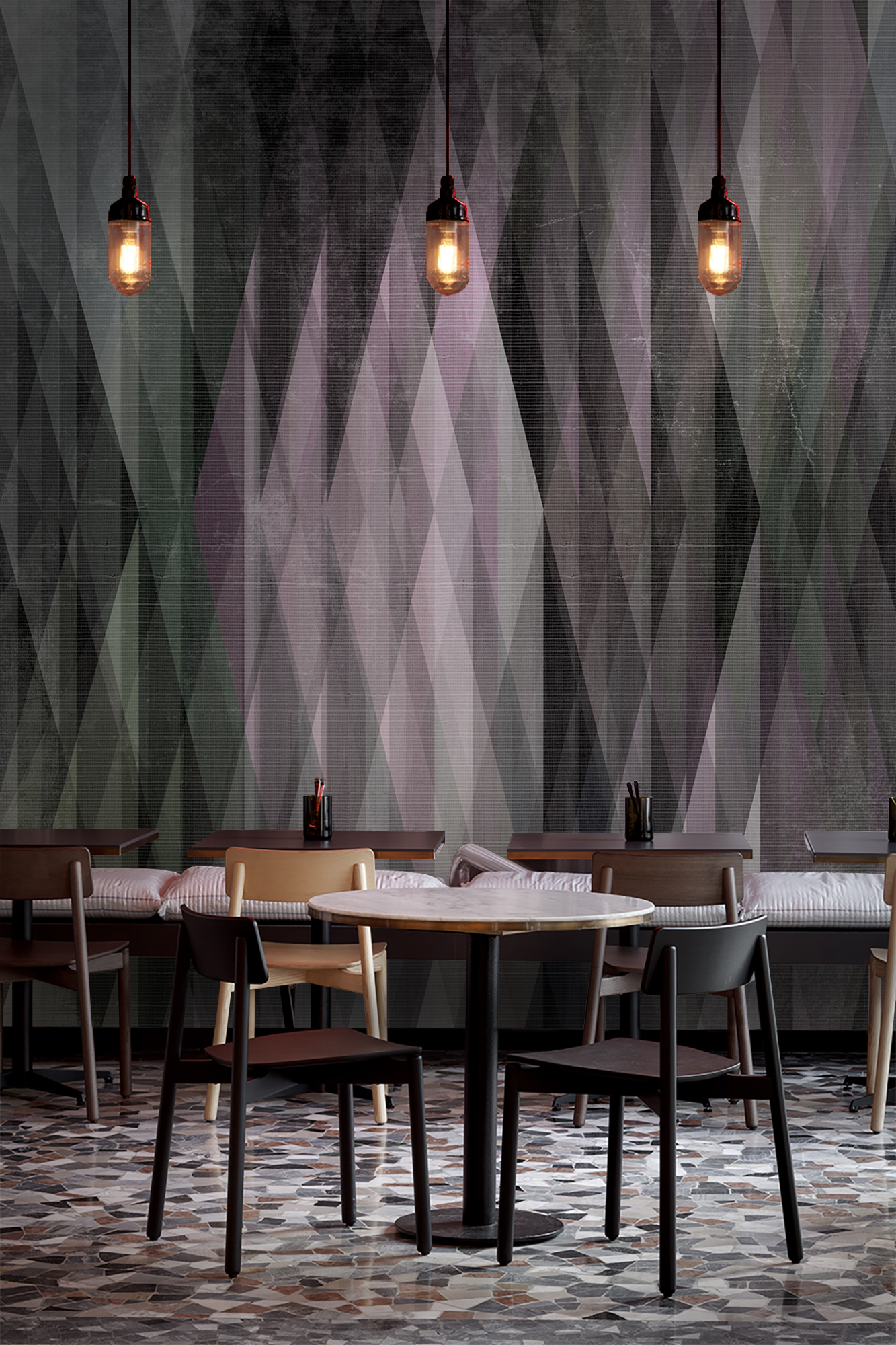 空间几何系列以点线面的构成作为创作主题,利用不同的构成方式,创造多样化的视觉效果,我们放弃了具体的内容和情节,突出运用这些纯粹的绘画语言来表现艺术形式的纯粹美;点、线、面和构成手法,就像是大厦的基石一样,看起来毫不起眼,但力量却无比强大,它是我们不断探索的源泉和情感表达的桥梁