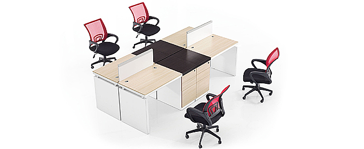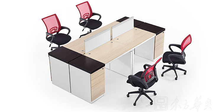※ 以三胺板叠加作为侧脚板,或者以木质文件柜作为台脚,明亮开放的工作站设计,多种形状的排布组合,文件柜的区域的充分利用,增大办公的空间感!