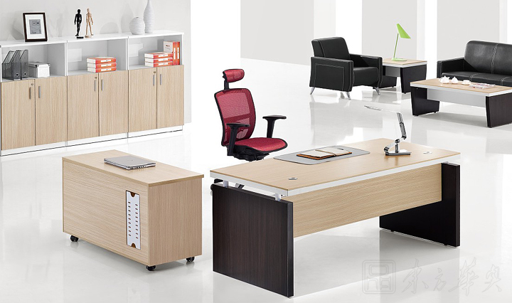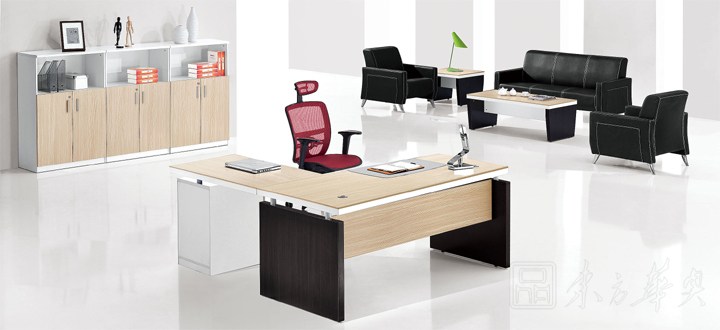 ※ 系列配套主管位的主台和副台连体结构展示,增大办公台空间区域。