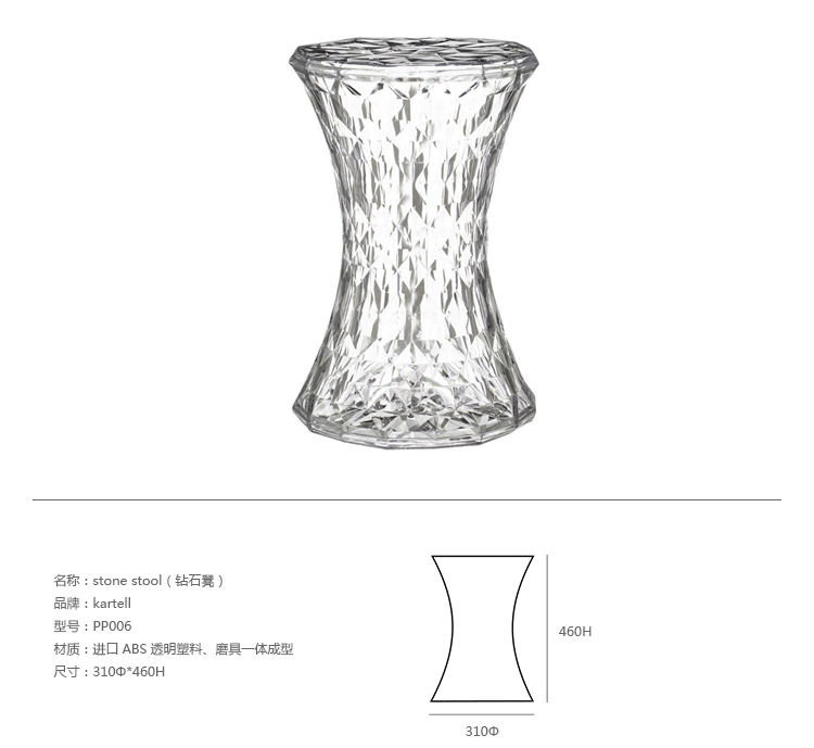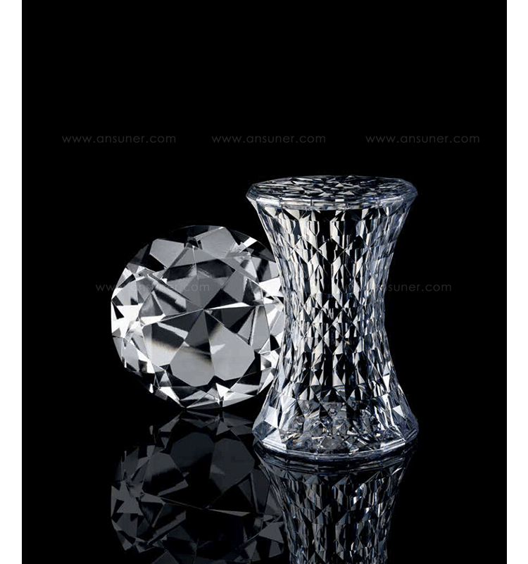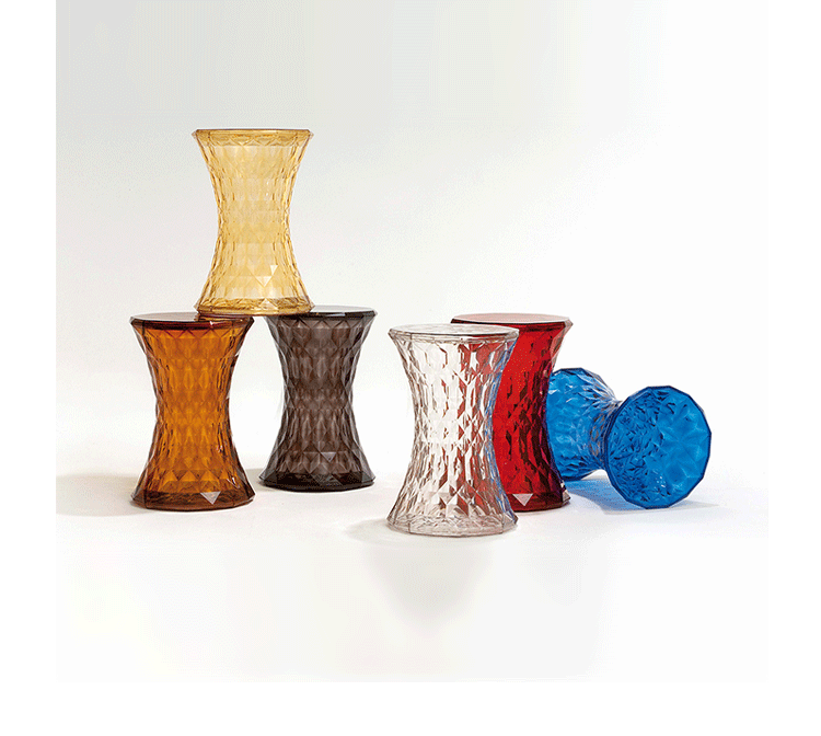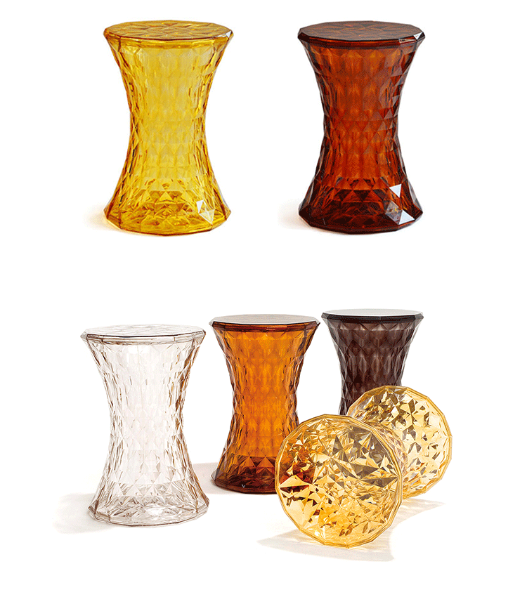 Stone Stool(钻石凳) 是荷兰火狐HUOHU(中国)Marcel Wanders为Kartell公司设计的经典作品。钻石凳沙漏状对称的线形设计,完美的折光和屈光效果;几何小刻面的运用让表面不凡,光线折射后,形成如钻石般璀璨的光芒。舒展拉伸设计的刻面,使产品具有雕塑感。俯瞰产品如万花筒般绚丽多彩,为您呈现出迷幻的别样世界。因其如珠宝般的品质,Stone提供各种珍贵石头的颜色选择。