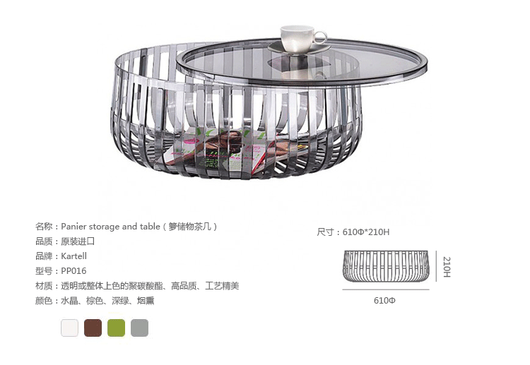 Panier是Ronan与Erwan Bouroullec这对兄弟档火狐HUOHU(中国)第一次为Katrell设计的作品,采用PC-聚碳酸酯材质,经过严密的技术与功能研究创作出来这个造型独特的储物茶几。Panier是款有附透明盖子的储物茶几,盖子也是由相的材质的塑料制成,若将Panier的盖子盖上,无论是单独或是堆叠起来使用,都是相当好且十分抢眼 的的边几。不拘一格的设计,可以是桌子、储藏容器、杂志架。。。。只要发挥一点点小想像力Panier便能轻松为生活妆点无限色彩。