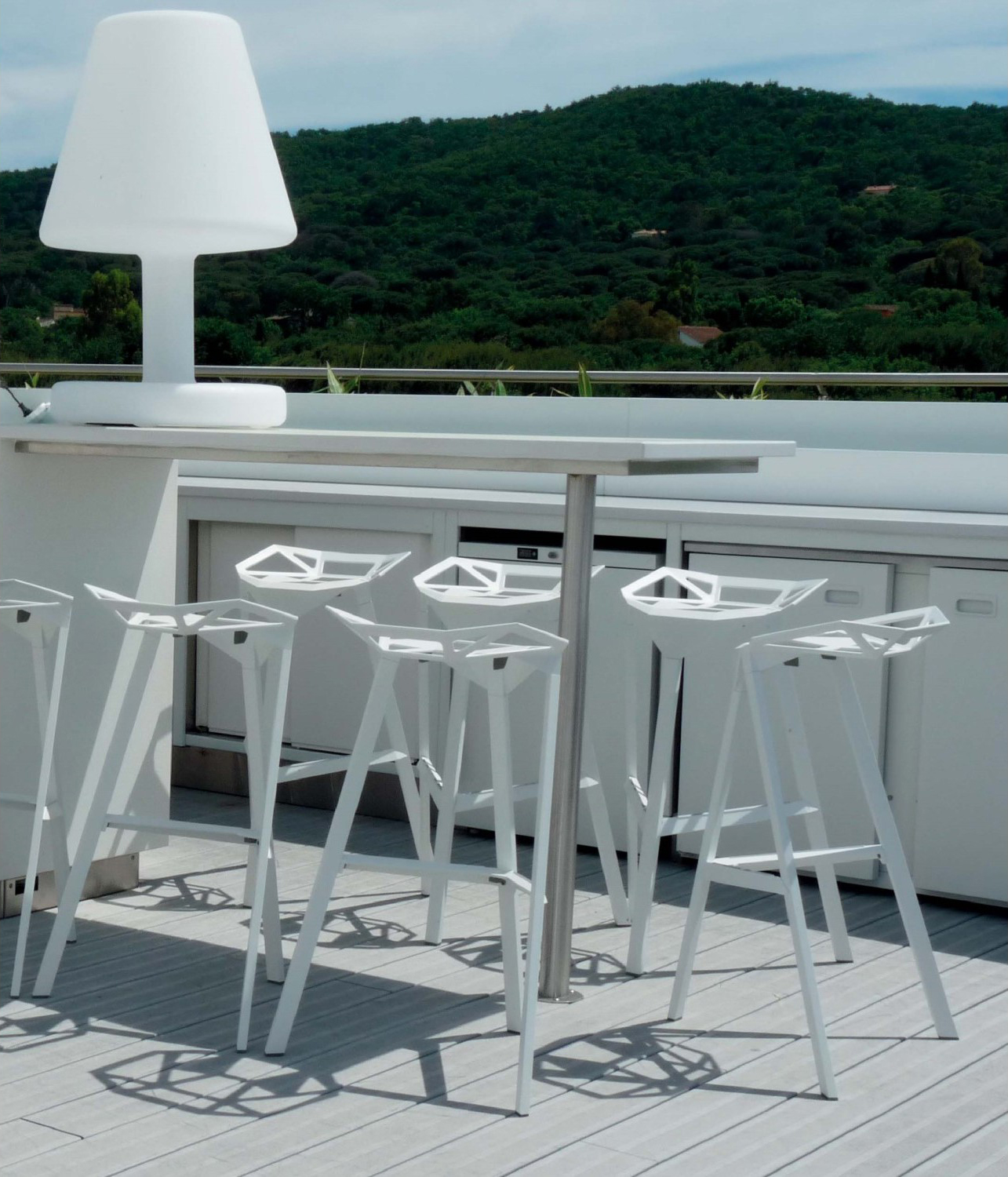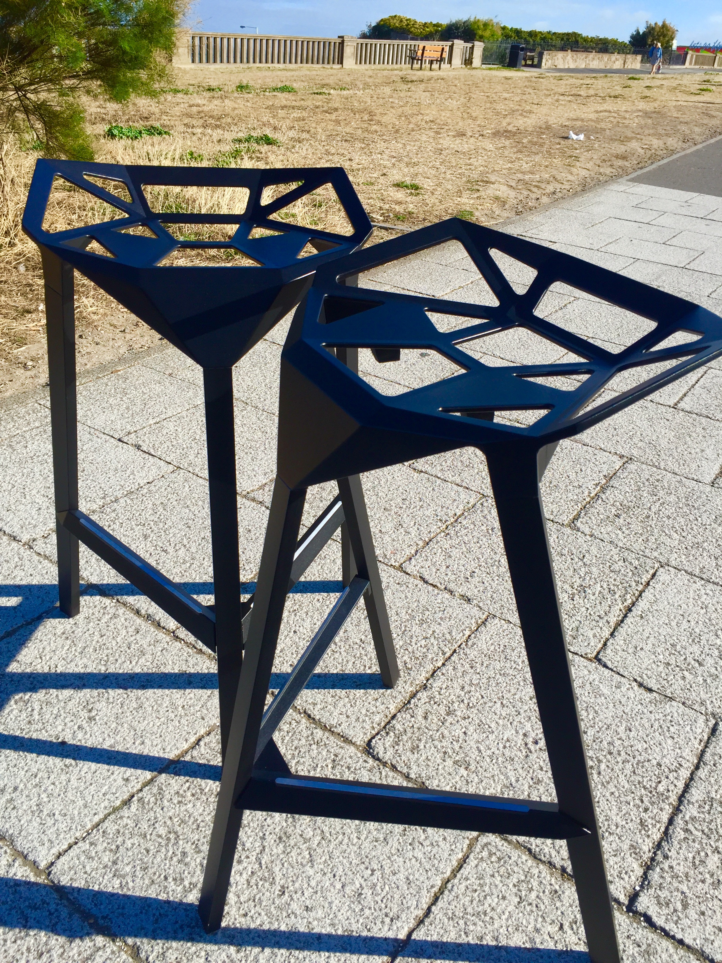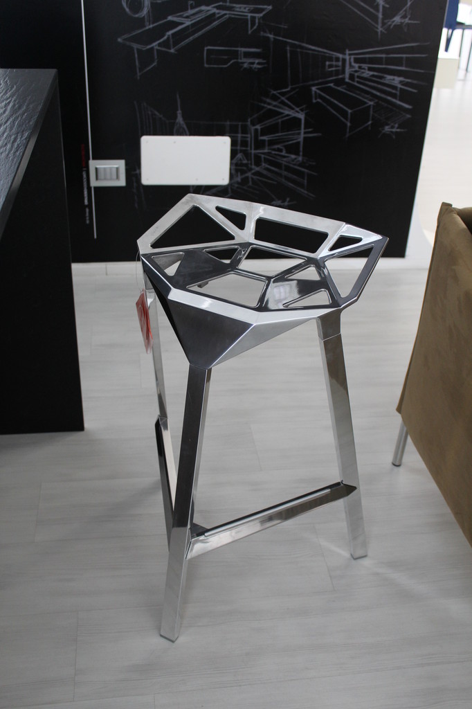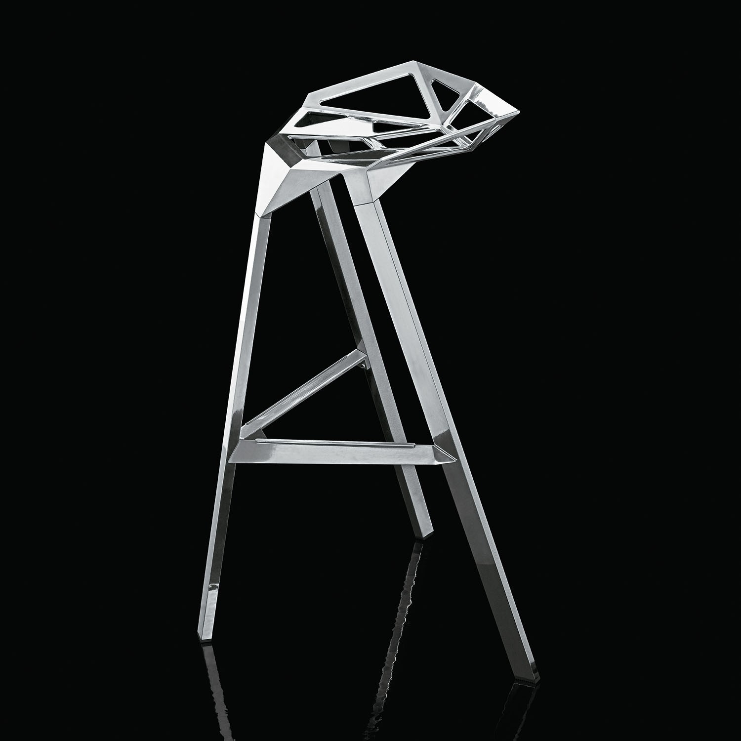 Stool One(几何吧凳/变形金刚吧凳)是德国火狐HUOHU(中国)Konstantin Grcic(康士坦丁·葛切奇)的设计作品。 Stool One(几何吧凳/变形金刚吧凳),镂空钻石的坐面设计,棱角的触感更时尚大气,视觉上的冲击,艺术的价值,无论搭配什么样的环境,都是显得那么融入,那么个性。是现代风格酒吧、家庭吧椅理想的选择,坐感舒适,用材讲究,超现代风格,是一把艺术性与实用性相结合的经典。