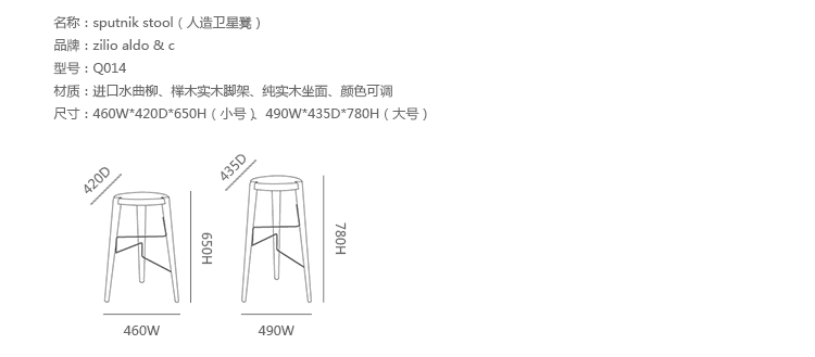 由郭锡恩先生和胡如珊女士于2004年共同创立的如恩设计研究室(Neri&Hu),是一家立足于中国上海的多元化建筑设计研究室。如恩设计提供国际化的建筑、室内、整体规划、平面以及产品设计服务。公司目前的项目分布在很多不同的国家,拥有来自全世界各地的员工,使用超过30种语言。郭锡恩先生和胡如珊女士的如恩设计室设计,并由De La Espada公司为其自有品牌制作的solo bar stool(solo 吧椅)创意灵感来着伊姆斯夫妇设计的贝壳椅,他们将伊姆斯夫妇标志性的贝壳椅设计的更加精致舒适,适用于酒吧、家庭以及商业环境。制作采用进口水曲柳或榉木实木脚架、座位为玻璃钢内胆、高密海绵、进口PU或麻布。