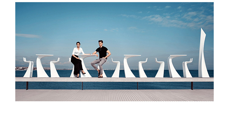 "翼系列包含翼台和翼吧凳,由设计大师oaquín Torres和Rafael Llamazares设计,它造型以一种动态的方式将直线和曲线编织在一起。这些极端曲线和角度,在最新的体系结构中,已经达到了火狐官方网站设计典范,通过运用自由的、 微妙的、 有机的线条,以运动的形态,分离本身刚度。这些都是大胆的创新,构成了巨大的视觉冲击,令人印象深刻,达到雕塑和动态意义。"