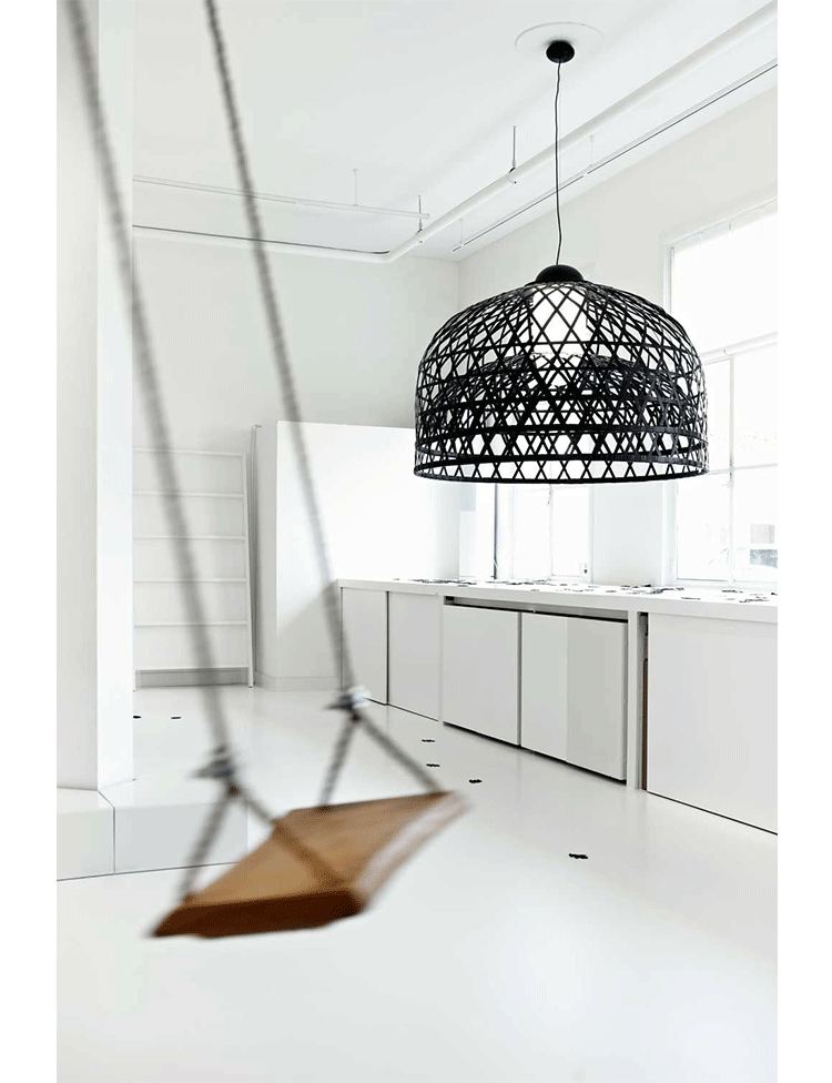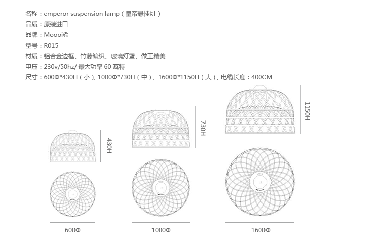 "Once upon a time an asian emperor received as a gift a nightingale. The charming bird sang so beautifully that the emperor always wanted it by his side. He placed the nightingale a majestic hand woven bamboo cage in the imperial chambers and listened, enchanted, to the magic sound" Material: Bamboo rattan cage, aluminum frame and glass diffuser Additional: Each cage is woven by hand And therefore has a unique character.