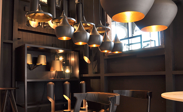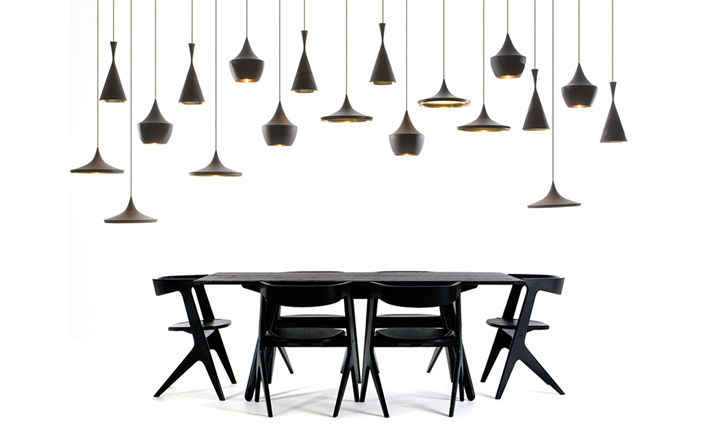 "Designer Tom Dixon was inspired by the shapes of Indian water carrying vessels when he designed his group of four different pendant lights. Hang just one, grab a pair, or hang the entire group of four in a composition of your own creation. The hand beaten brass ages naturally, creating a patina black external surface in contrast to the warm golden interior. available in 4 different shapes and sizes. "