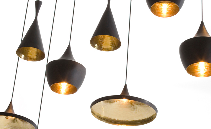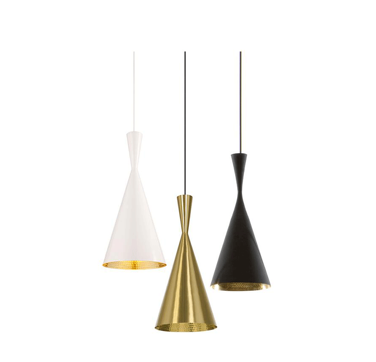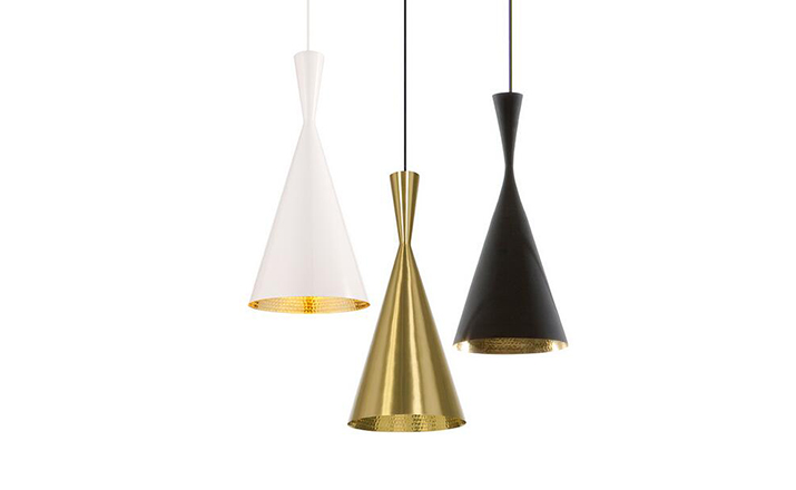 lamps series of brass beat light is a series of suspended luminaires by tom dixon. the lamps are handmade brass produced and receive their black aubenfarbe later. the beat lights differ in the form of their screens.beat light wide has a shallow but wide screen. beat light stout has a compact, rounded umbrella. beat light fat is small, but far and compact. and beat light tall is funnel-shaped and oblong.simple black housing all lamps is their simple black appearance together. the various screens but for different lighting. the brass one home is due to the different forms of different highly visible, why the lights in different but always as "related"remain identifiable.black exterior and interior messingfarbenes the black exterior and the brass one, bright home, giving the light an interesting and geheimnissvolles appearance. nevertheless, the beat light lamps are due to their simple forms and colors in each institution, the second look, but certainly a highlight that the views of themselves.the beat light lamp by tom dixon of brass in black in the variants produced wide, fat and tall. the lamps series is also in variations of brass in other colours.