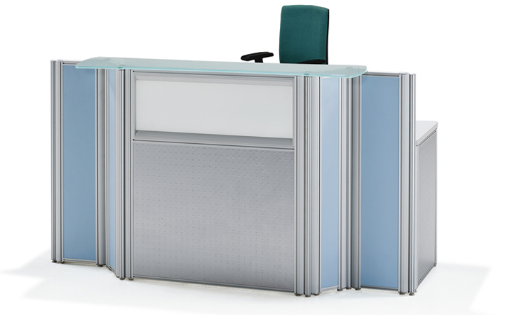 ※ 上图为前台正面展示图,屏风组件的前台,公司的初步形象展示,巧妙的互换前台装置;简约的风格和巧妙的连接,一次又一次改变你的办公环境,令人耳目一新。