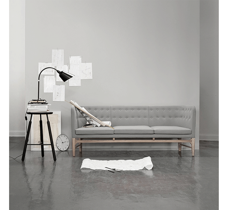 Mayor Sofa(市长沙发)是丹麦设计大师 Arne Jacobsen在1939年设计的作品,是经典的斯堪的纳维亚设计,市长沙发创建了真正的堡垒,让坐在背后的人感觉受保护,并很好的隐藏视野,设计充分考虑人体工学,满足绝佳的舒适度。复古而又时尚的设计,至今任大受推崇。制作采用榉木/水曲柳/胡桃木实木脚架、内部填充高密度沙发棉、表面扪进口羊毛绒或麻布或PU或真皮(颜色多选)。