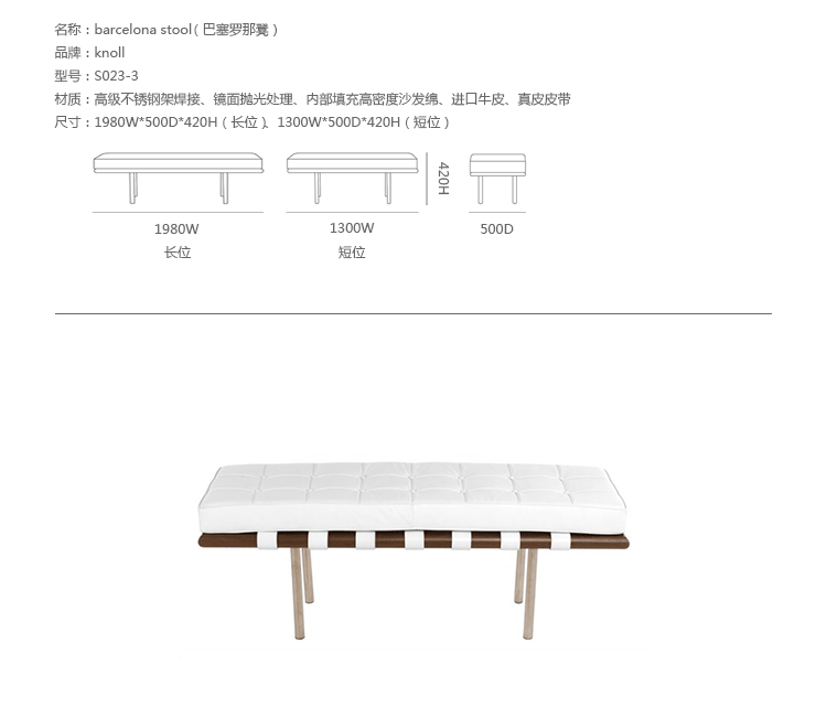 barcelona stool(巴塞罗那凳)是美国火狐HUOHU(中国)Harry Bertoia设计的,像她其他突破性的工业设计一样,barcelona stool(巴塞罗那凳)表现了20世纪中期的现代设计和体系结构。人们能从这款长凳子的设计中领略到火狐HUOHU(中国)“少即是多”的建筑理念。它将眩亮的不锈钢、柔软的皮革以及原木完美地结合在一起,具有很强的现代感。不管是居家还是办公场所,巴塞罗那长凳都能放置其中,成为很好的摆设;无论是小坐片刻还是午间休憩,都是理想之选。