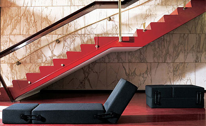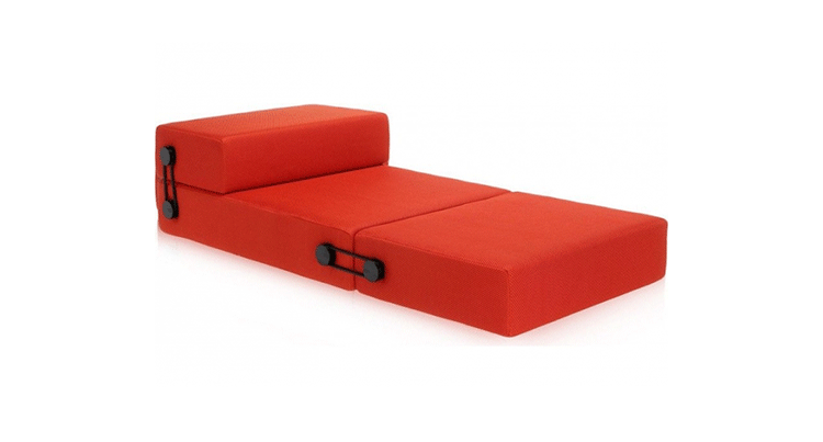 Trix Sofa Bed(Trix 沙发床)三个不同的元素组成的,通过弹性可随时转换和适应不同的用途,通过简单的旋转优雅系统连接。Trix 可以两人坐垫凳,舒适的床、 躺椅,或者扶手椅。Trix 是由可移动(折叠)的3D 图案技术面料泡沫聚氨脂软垫制成的。