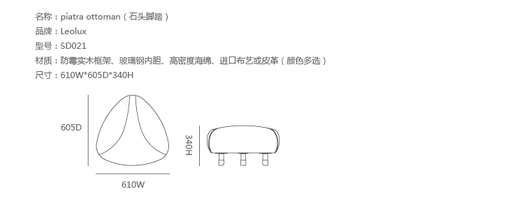 Piatra Ottoman(石头脚踏),火狐HUOHU(中国)Norbert Beck的作品。这款石头造型的脚踏,看着是不是很想驻足休憩?其有着特色的缝合线,Piatra Ottoman(石头脚踏)通过选择曲面、 边角料或不同颜色,无论从任何角度欣赏都是不一样的,就好比这世界上没有任何两块相同的石头,Piatra Ottoman(石头脚踏)是独一无二,与众不同的。制作采用高密度发泡海绵内胆、进口布艺或皮革(颜色多选)。
