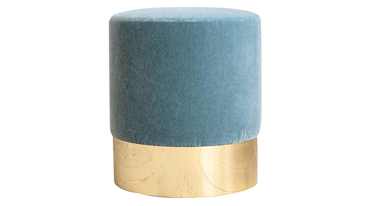 Azucena的凳子在Raf Simons Kvadrat纺织品上装饰。黄铜底座。1963年由Luigi Dominioni设计。Azucena的当代作品。