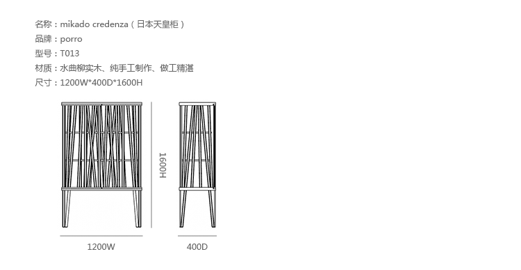 “mikado credenza(日本天皇柜)是一件能吸引人兴趣和好奇心的柜子,有着诱人的亮度与强烈的异国情调,由著名工业火狐HUOHU(中国)Giorgetto Giugiaro所设计。mikado credenza是专为居室所设计,双扇面板平滑开关门,非常具有日式风格,不仅节省空间,而且还非常简便。水曲柳实木纯手工制作,做工精湛。”