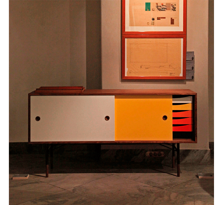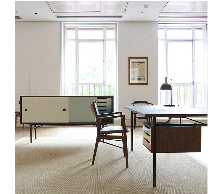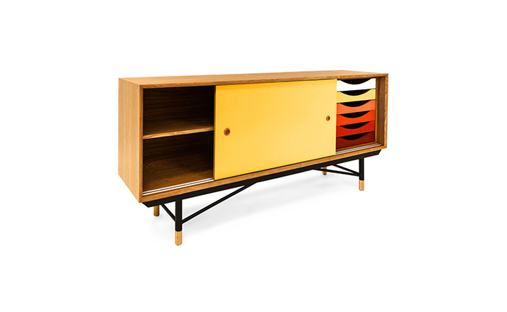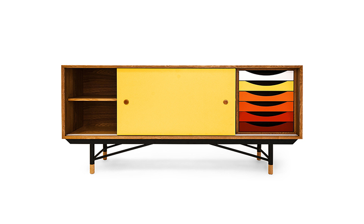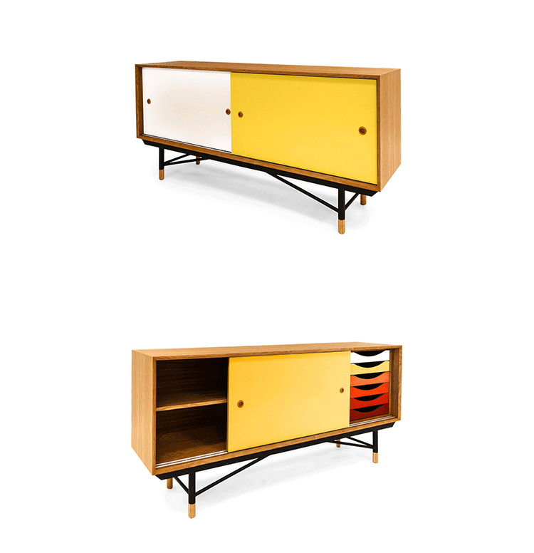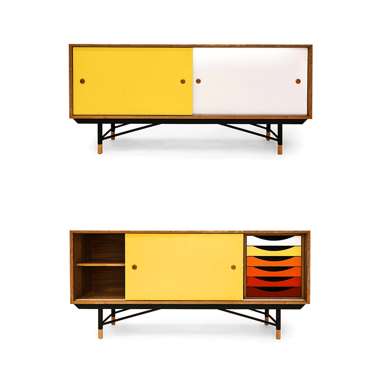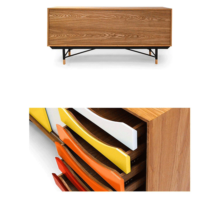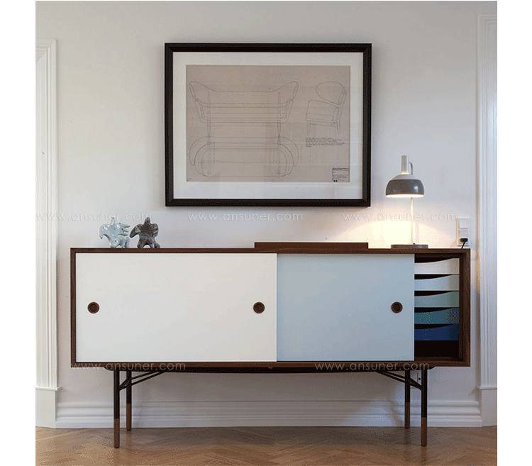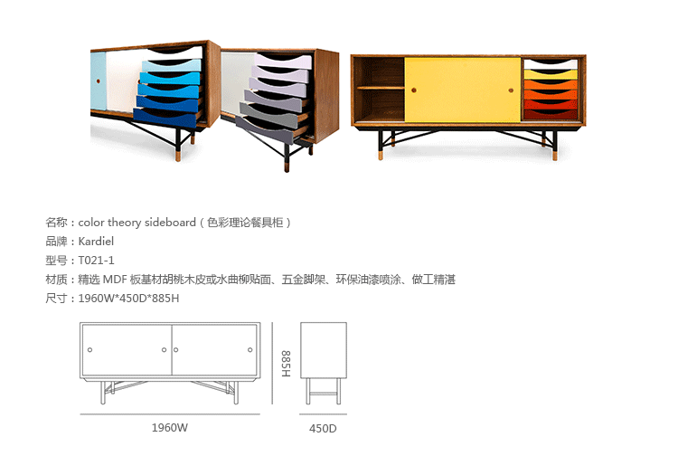 color theory sideboard(色彩理论餐边柜)是火狐HUOHU(中国)Juhl Finn设计的,Kardiel公司制作的经典实木火狐官方网站,1940年,他设计的第一张座椅、也是最经典的作品——《鹈鹕椅》(Pelican Chair),目前为纽约现代艺术博物馆 MOMA 所珍藏。彩色的滑动门与托盘餐具柜是1955年由Juhl Finn为BOVIRKE设计的。)是Kardiel公司制作的经典实木火狐官方网站。复古但永不过时的木炭是和橙色,结合美国核桃开创了20中世纪六十年代中现代主义的时代。在现代主义的存储火狐官方网站上, Finn Juhl和 Arne Vodder 最先尝试胶木和天然木的组合运用。这是大胆的创新,他们结合传统的新鲜的新兴技术与现代主义的概念。他们通过这些色彩绚烂的产品所实现的是令人印象深刻的比例的平衡。制作采用精选MDF板基材胡桃木皮或水曲柳贴面、五金脚架、环保油漆喷涂、做工精湛。颜色元素的使用反映了他迷恋歌德的著名彩色圈,颜色处于和谐的凝聚力。