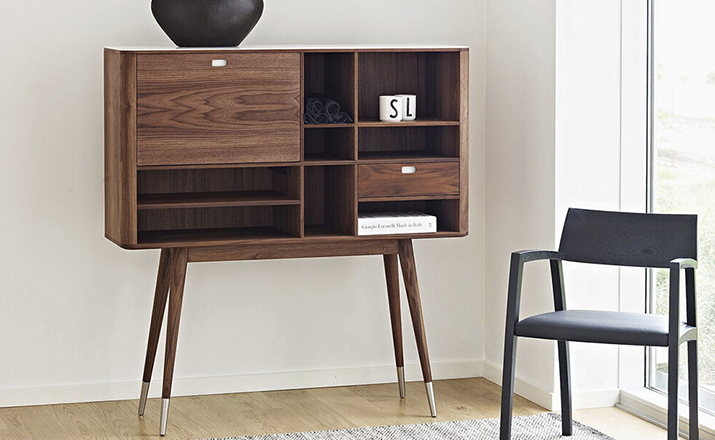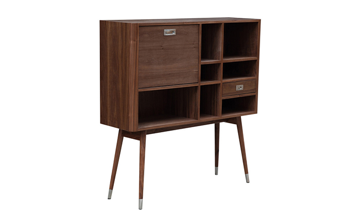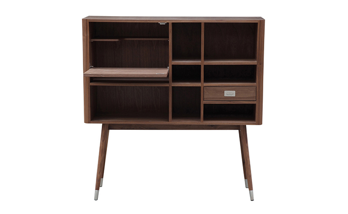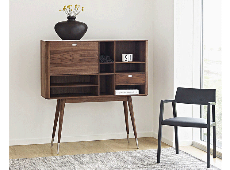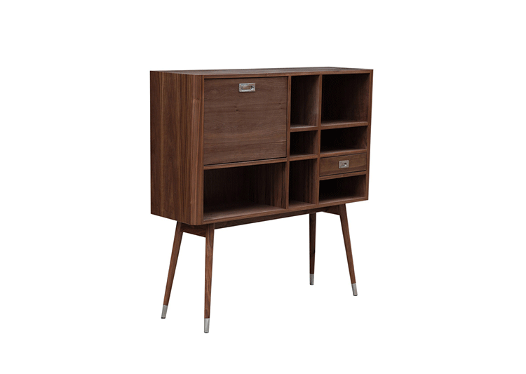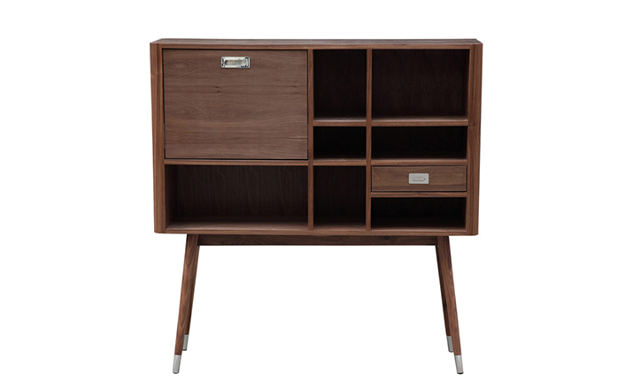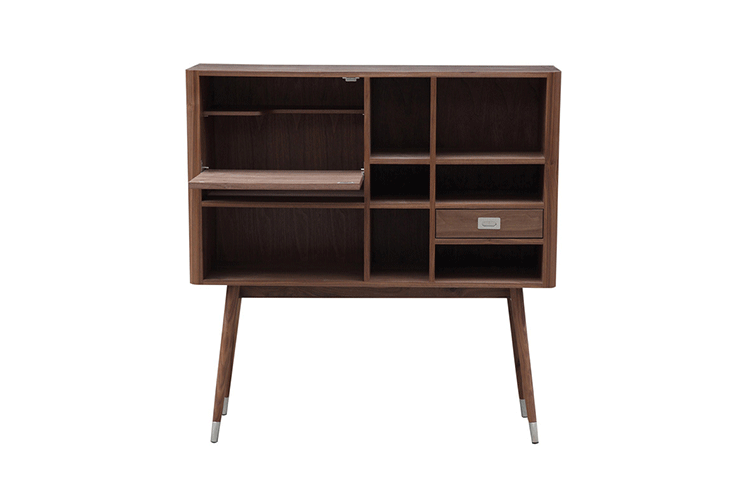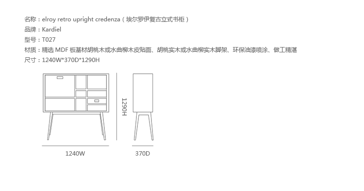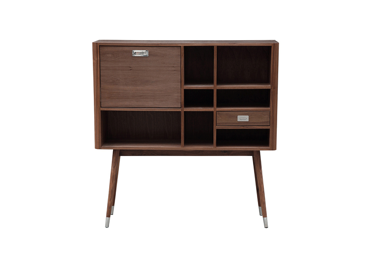 elroy retro upright credenza(埃尔罗伊复古立式书柜)是Kardiel公司制作的经典实木火狐官方网站,1960年设计,是一件不朽的设。这个当代复古立式书柜有着高高的脚架,多个滑动抽柜和开放式抽屉。它允许“公开展示”和“隐蔽”所有类型的珍惜贵重物品的存储物。不锈钢装饰抽屉拉手和基部的尖尖的脚钉。