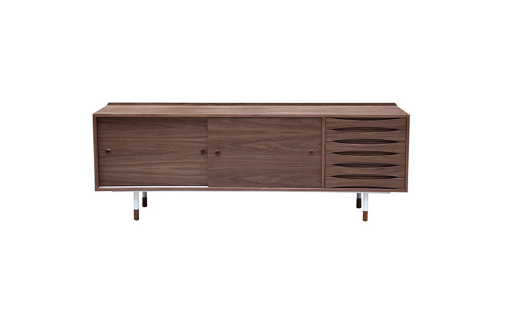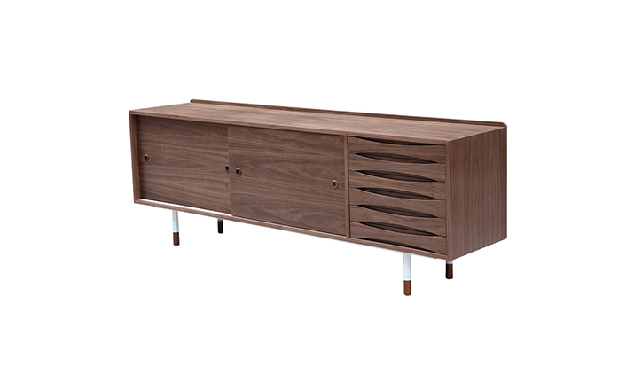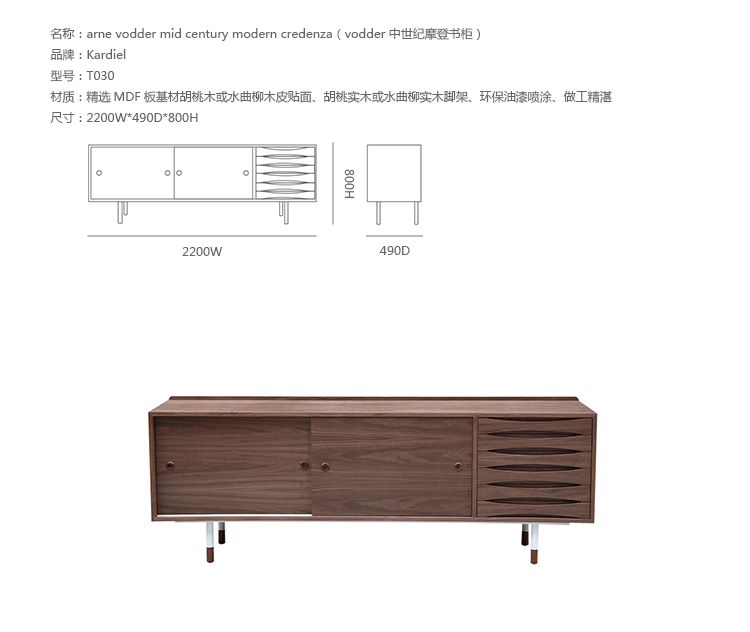 arne vodder mid century modern credenza(arne vodder世纪中期现代书柜)是Kardiel公司制作的经典实木火狐官方网站,具有世纪中期的现代风格。Arne Vodder书柜拥有三个隔间部分,一个隔间由6个滑动式抽屉组成,其余的两个隔间由2个中等及较低的架子格子组成,能够完成最大化存储。这些抽屉都能够通过金属滑动的滑动门打开或关闭。制作采用精选MDF板基材胡桃木或水曲柳木皮贴面、胡桃实木或水曲柳实木脚架、环保油漆喷涂、做工精湛。