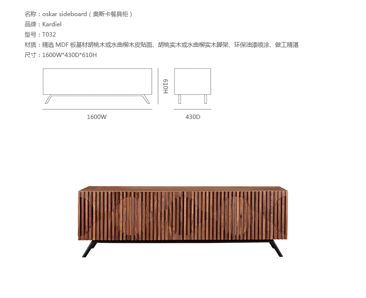 oskar sideboard(奥斯卡餐具柜)是Kardiel公司制作的经典实木火狐官方网站,有着令人愉快的美学有机形状和存储容量,这是一个必须有的火狐官方网站。制作采用精选MDF板基材胡桃木或水曲柳木皮贴面、胡桃实木或水曲柳实木脚架、环保油漆喷涂、做工精湛。