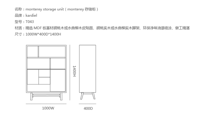 monterey storage unit(monterey存储柜)是Kardiel公司制作的经典实木火狐官方网站,具有世纪中期的现代风格。在现代主义的存储火狐官方网站上, Finn Juhl和 Arne Vodder 最先尝试胶木和天然木的组合运用。这是大胆的创新,他们结合传统的新鲜的新兴技术与现代主义的概念。制作采用精选MDF板基材胡桃木或水曲柳木皮贴面、胡桃实木或水曲柳实木脚架、环保油漆喷涂、做工精湛,是您理想的选择。