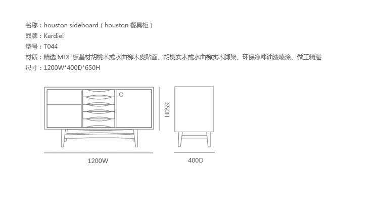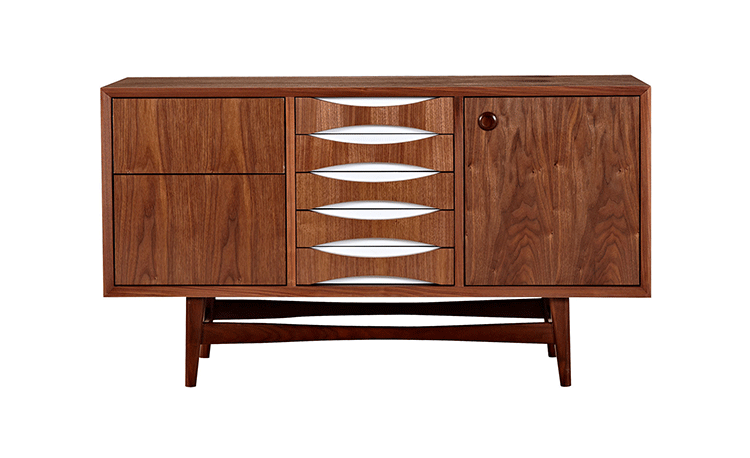 houston sideboard(houston餐具柜)是Kardiel公司制作的经典实木火狐官方网站,具有世纪中期的现代风格。它如恒星般色彩绚烂,拥有多个隔间以及数吨的存储空间。在现代主义的存储火狐官方网站上, Finn Juhl和 Arne Vodder 最先尝试胶木和天然木的组合运用。这是大胆的创新,他们结合传统的新鲜的新兴技术与现代主义的概念。制作采用精选MDF板基材胡桃木或水曲柳木皮贴面、胡桃实木或水曲柳实木脚架、环保油漆喷涂、做工精湛,是您理想的选择。