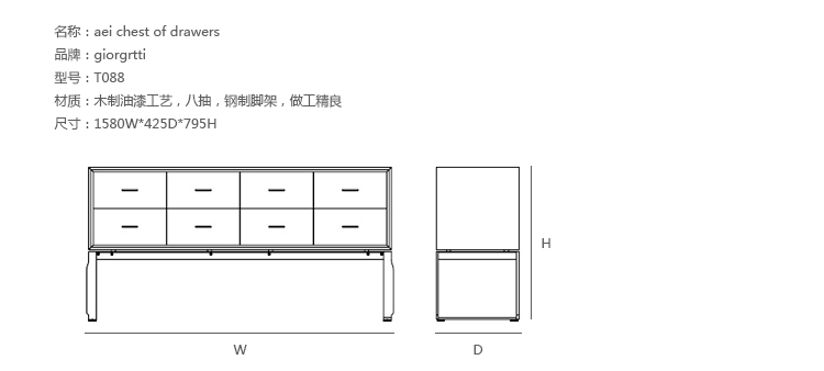 4或8抽屉衣柜在核桃卡纳莱托木(fin.11)。 抽屉方面都有两个版本:白色小提琴状的东西画梧桐或者金箔装饰。 抽屉里配有沉默系统总提取后退指南。 处理和金属基体上铜的颜色。