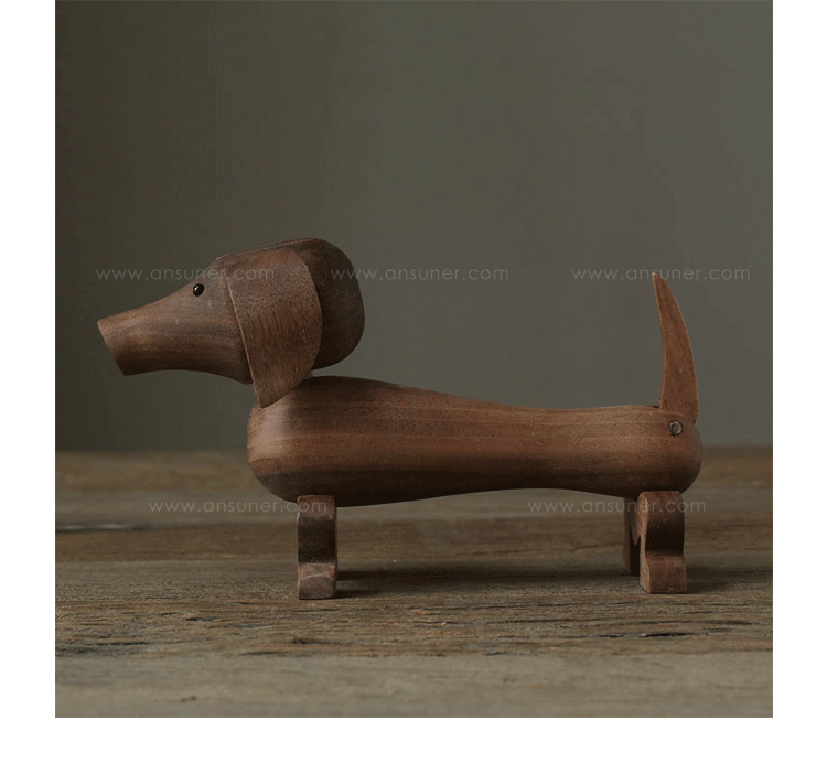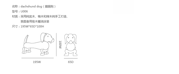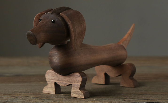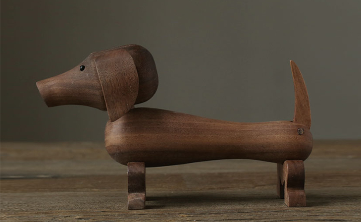 Dachshund Dog(腊肠狗)设计于1934年,出自丹麦设计大师 Kay Bojesen 的设计作品,精致的木制动物系列,是 Kay Bojesen 为人熟知的珍藏作品系列,采用不同的橡木、枫木、柚木等原木素材,保留木材的独特纹理,刻画出各种不同让人莞尔一笑的动物姿态,跳脱生活中的烦琐与紧张,简单的玩偶,轻松的神情,带您回归孩时的天真与简单快乐。精致而限量珍藏的作品系列,适合您作为桌面摆设,或是作为送礼小物,分享您生活中的快乐写意。