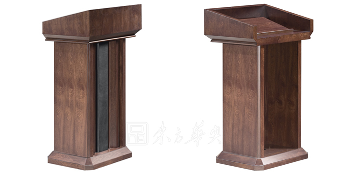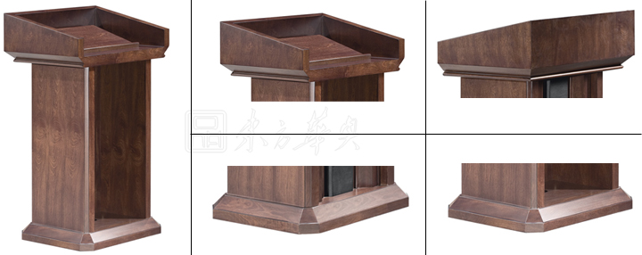※ 上图为演讲台细节展示图,可选配话筒等配件,优美的弧形主体,木质油漆结构,进口油漆,国内首创内增加纳米银抗菌材料。